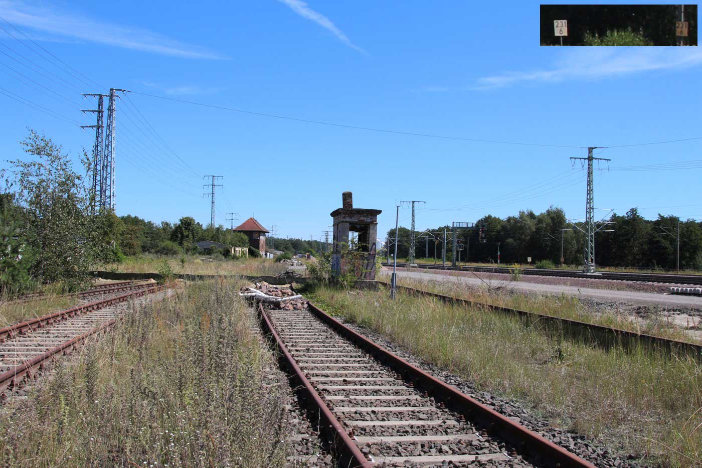 km 26,8 (Stein) gehört zum Gegenrichtungsgleis der Strecke Wiesenburg (Mark) 0,0 - Meinsdorf 26,9 - [Roßlau (Elbe) 29,55]
