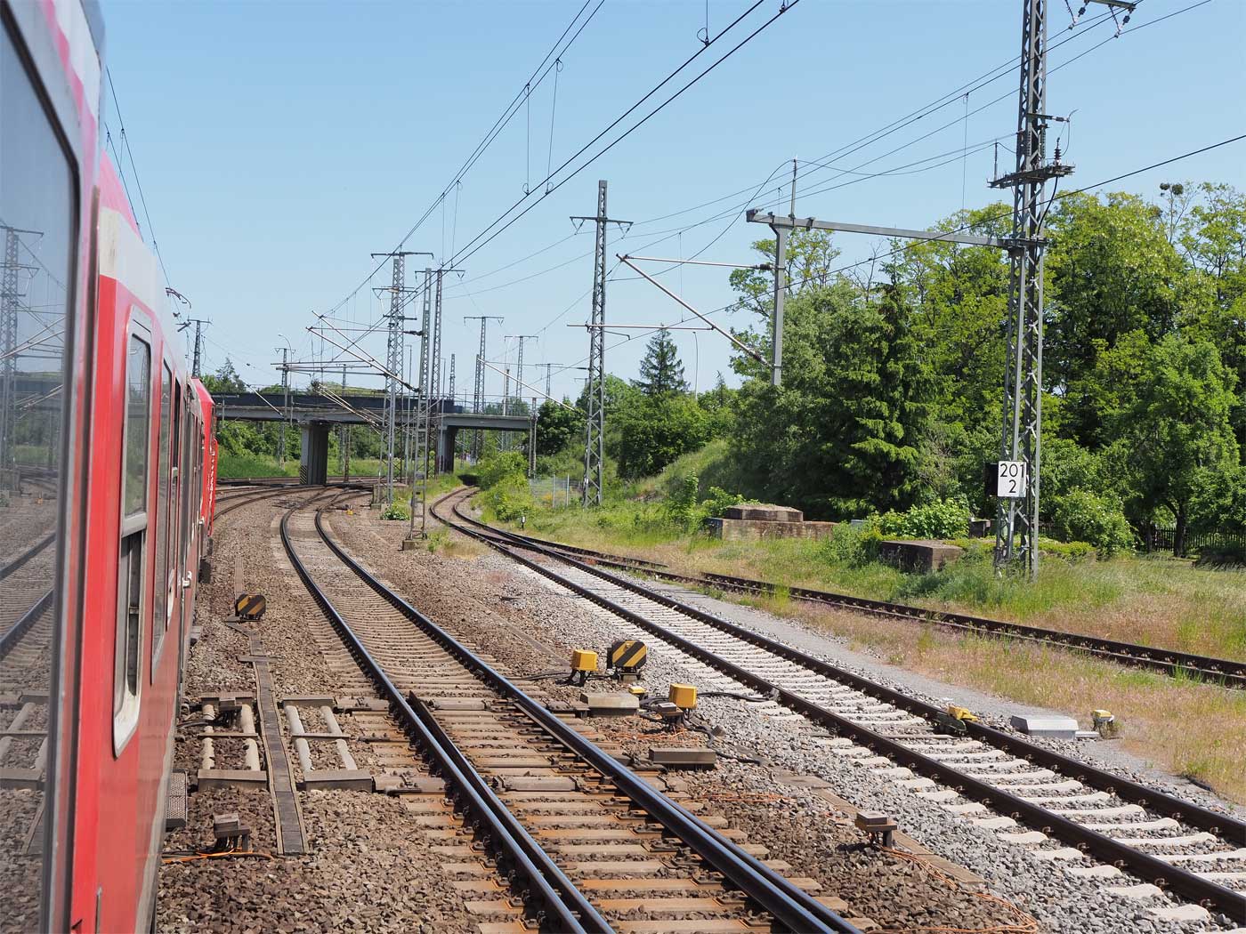 km 232,6 (hinter dem Oberleitungsmast) gehört zum Streckenast