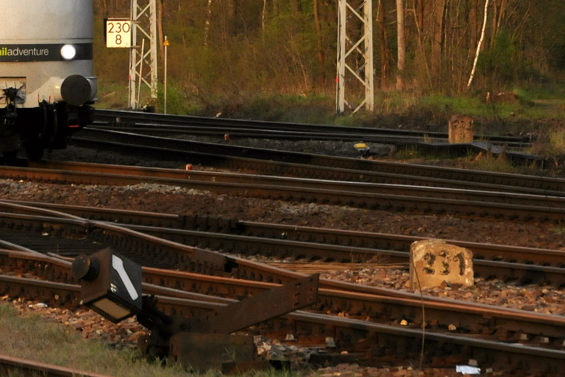 Der Zug des Fotografen befindet sich bei km 231,1 des Streckenastes nach Roßlau