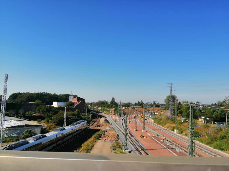Der Zug selber befindet sich auf dem Gegenrichtungsgleis der