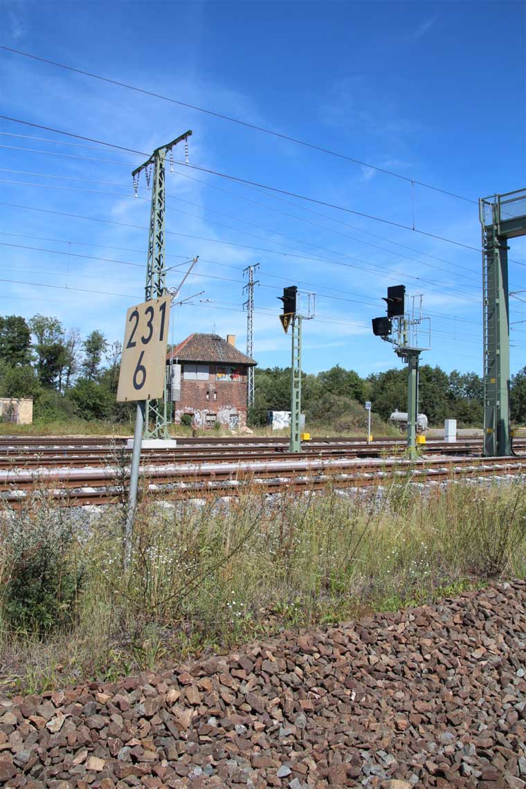km 232,6 (links) gehört zum Streckenast nach Roßlau (Elbe)