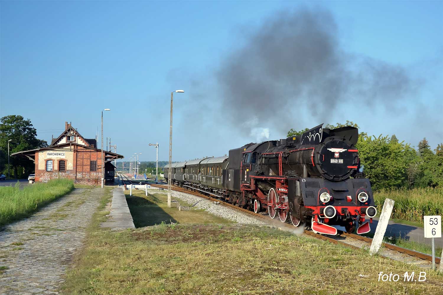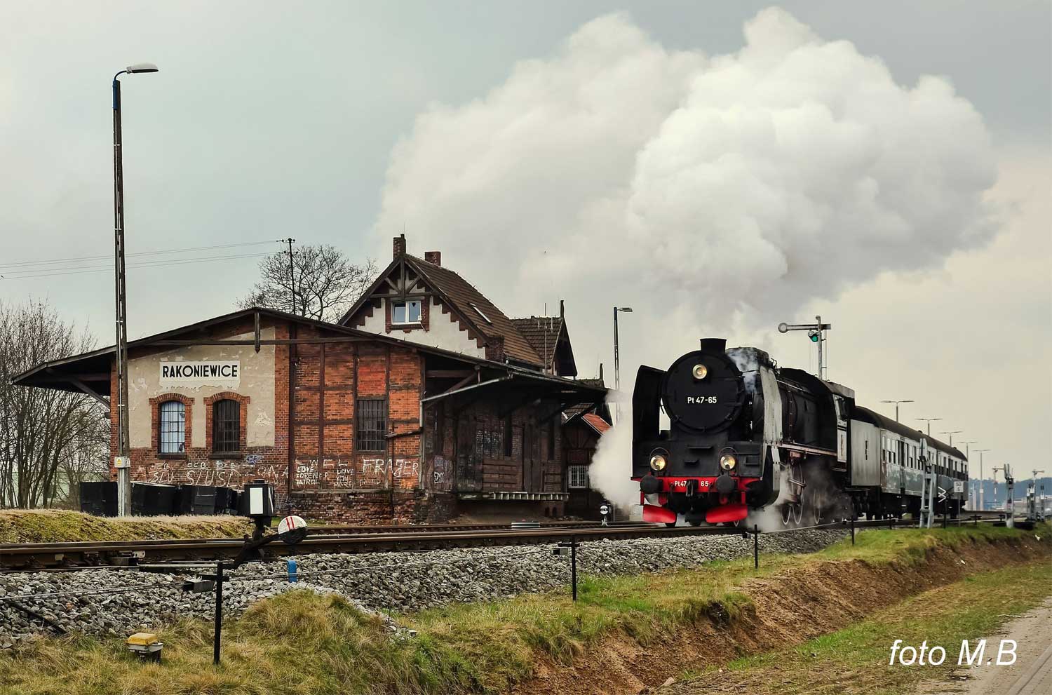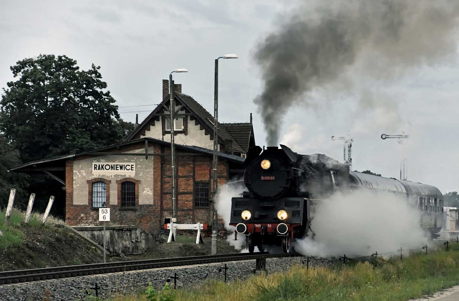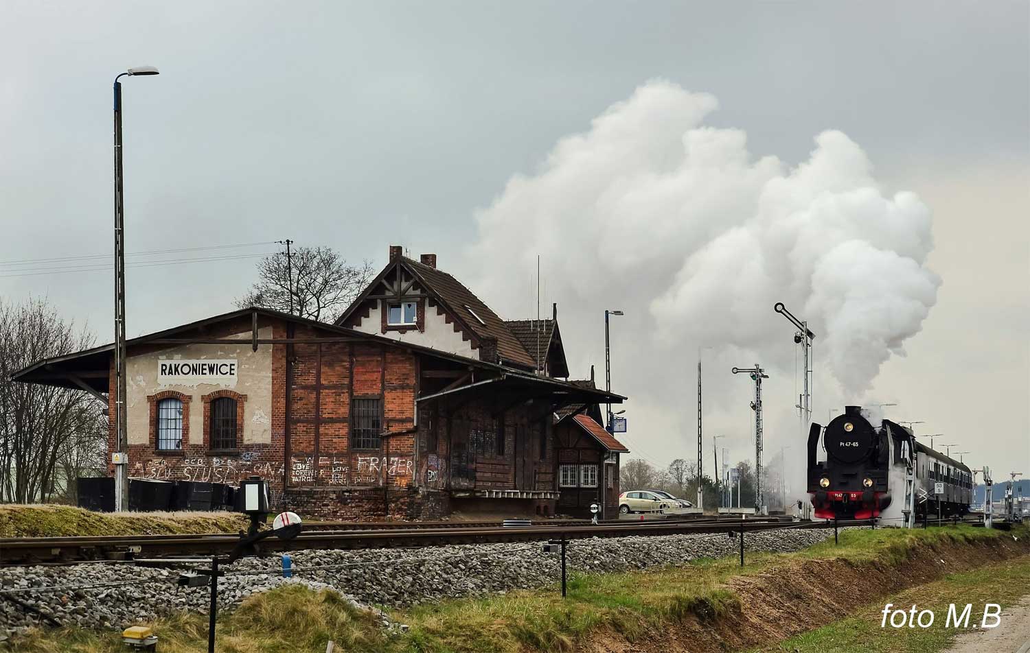 Rakwitz (Bz Posen) | 14,62 | km 0,0 der Strecke Rakwitz (Warthel) 0,0 - Altboyen 30,6 - Kriewen 48,6 (Schmiegeler Eisenbahn) Spurweite 1000 mm (ab 1952 Umspurung auf 750 mm) |