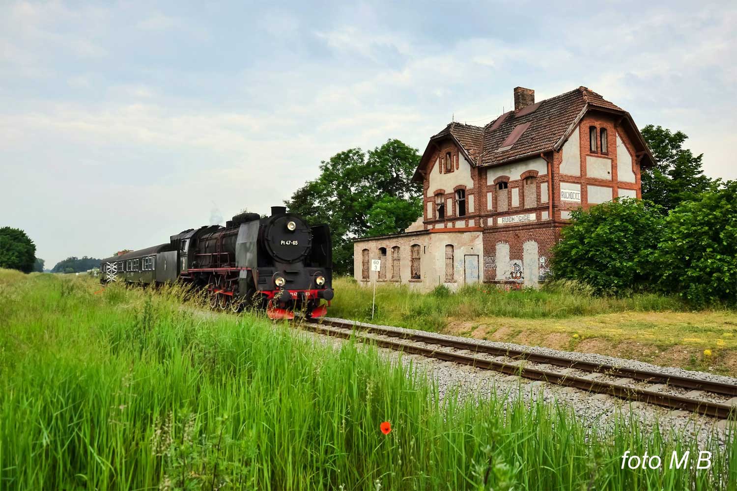 Rakwitz (Warthel) | 58,654 | km 0,0 der Strecke Rakwitz (Warthel) 0,0 - Altboyen 30,6 - Kriewen 48,6 (Schmiegeler Eisenbahn) Spurweite 1000 mm (ab 1952 Umspurung auf 750 mm) |