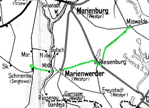 Schmentau 0,0 - Marienwerder (Westpr) 22,60 - Riesenburg 43,50 - Miswalde 75,59