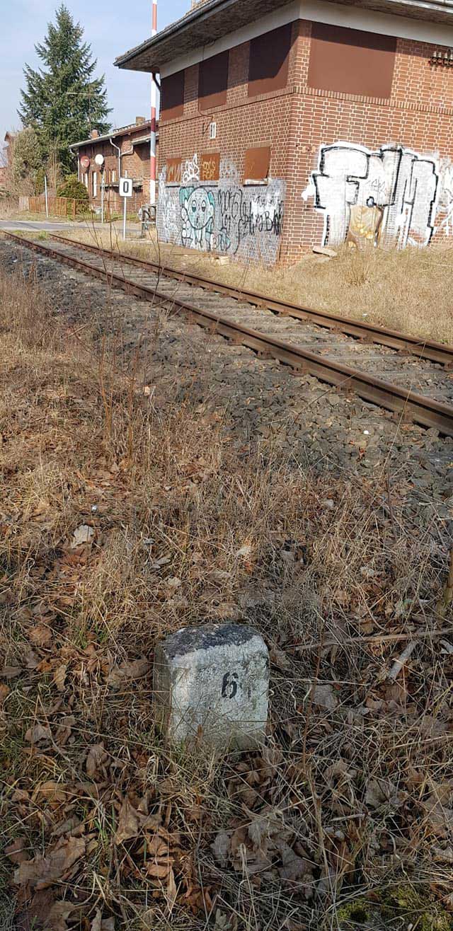 km 0,0 der Strecke Salzwedel Neustadt 0,0 - Diesdorf 36,2 (bis 1927 Spurweite 1000 mm, dann Normalspur) (Salzwedeler Eisenbahn)