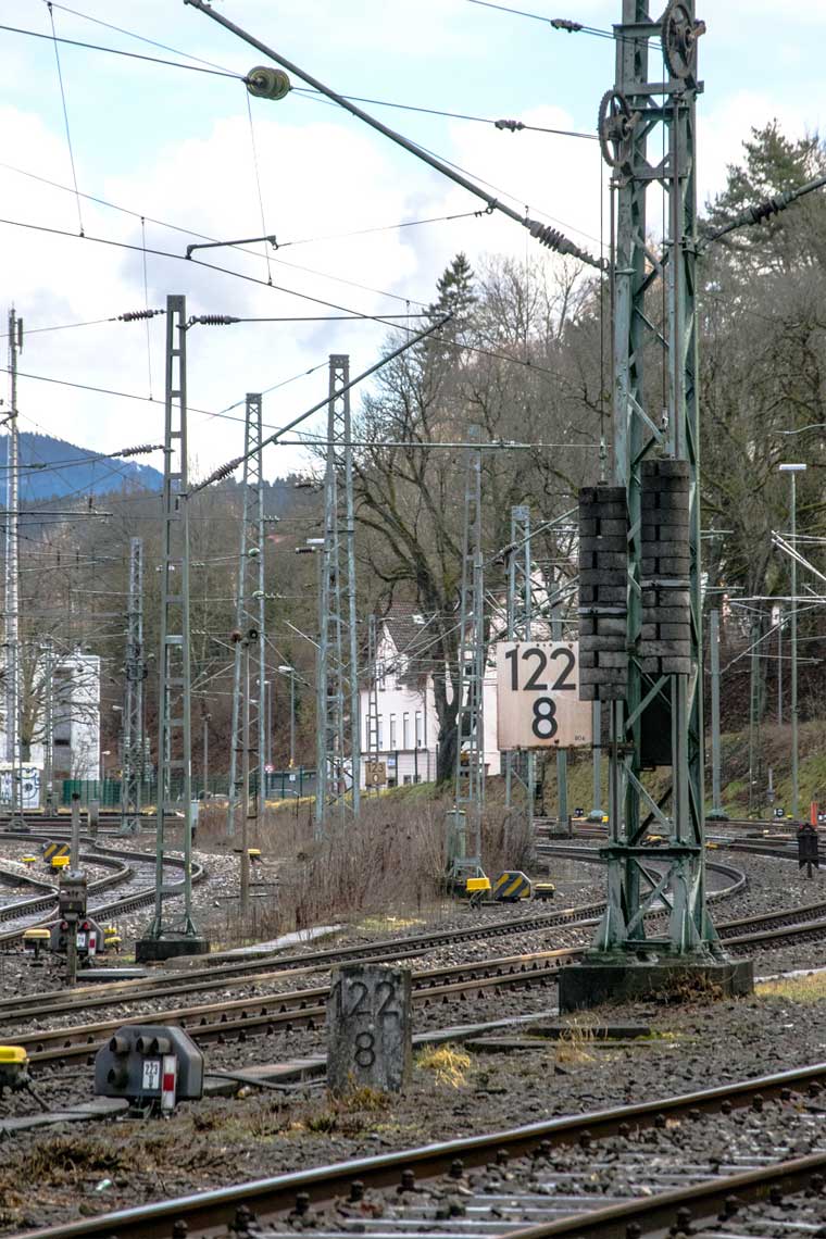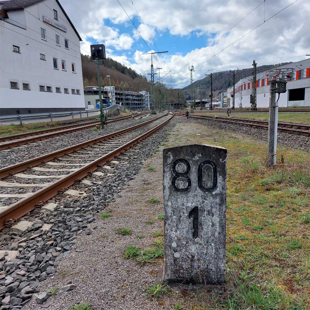 Immendingen | 161,01 | km 64,95 der Strecke Oberlauchringen 0,0 - Weizen 20,40 - Zollhaus-Blumberg 45,97 - Hintschingen 61,498 - (Immendingen 64,95) (Wutachtalbahn, sog. Strategische Bahn) |