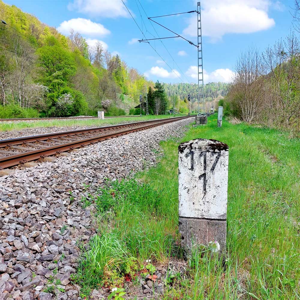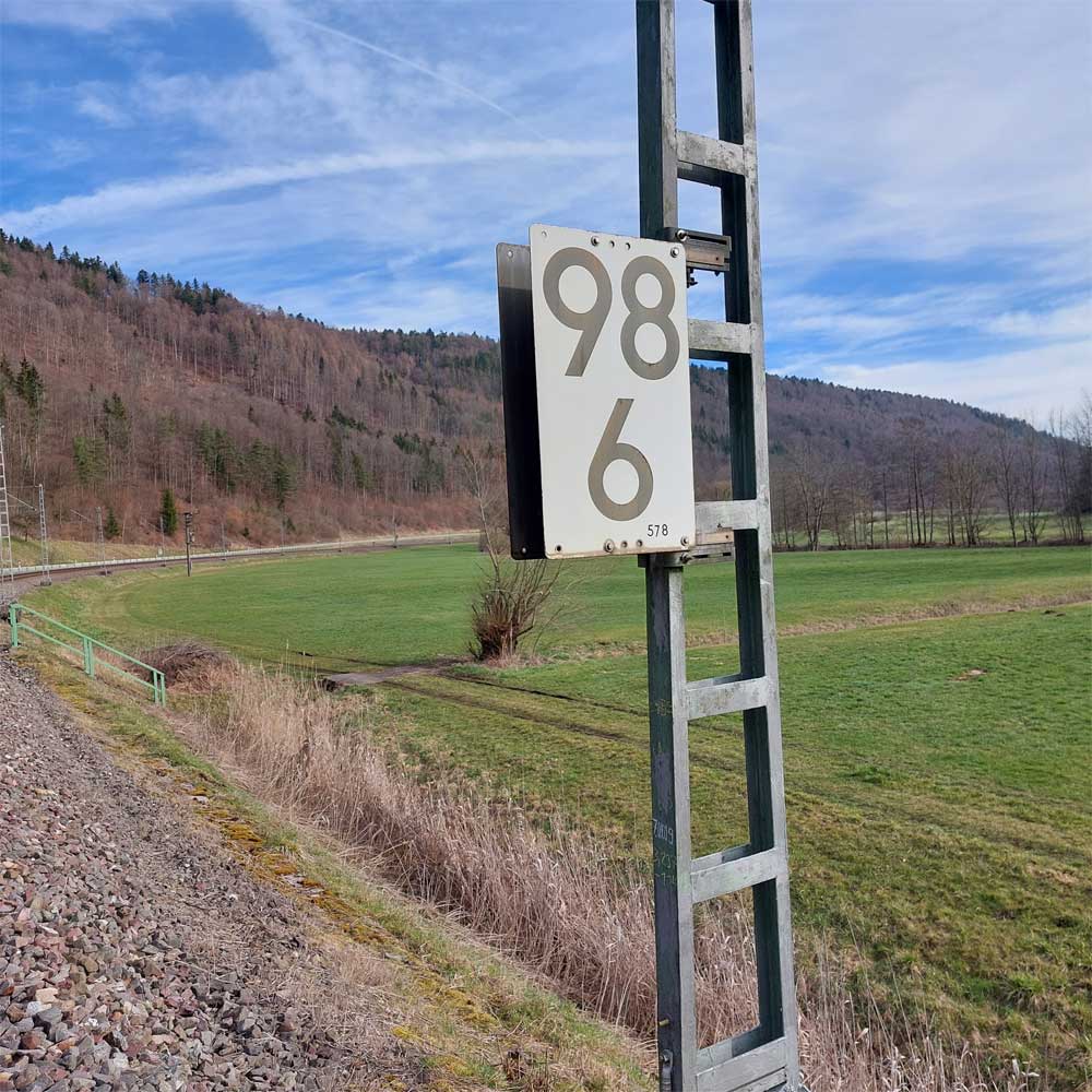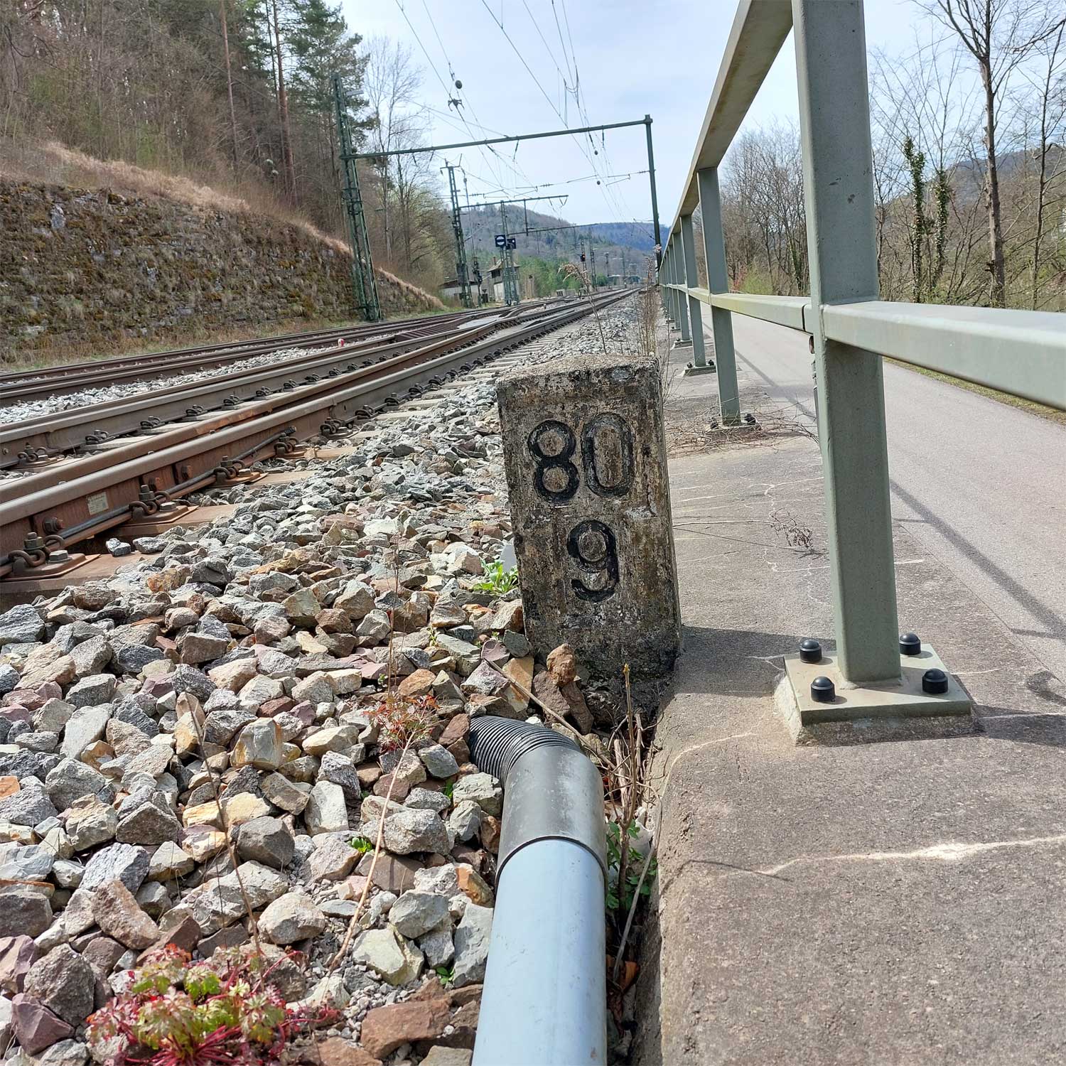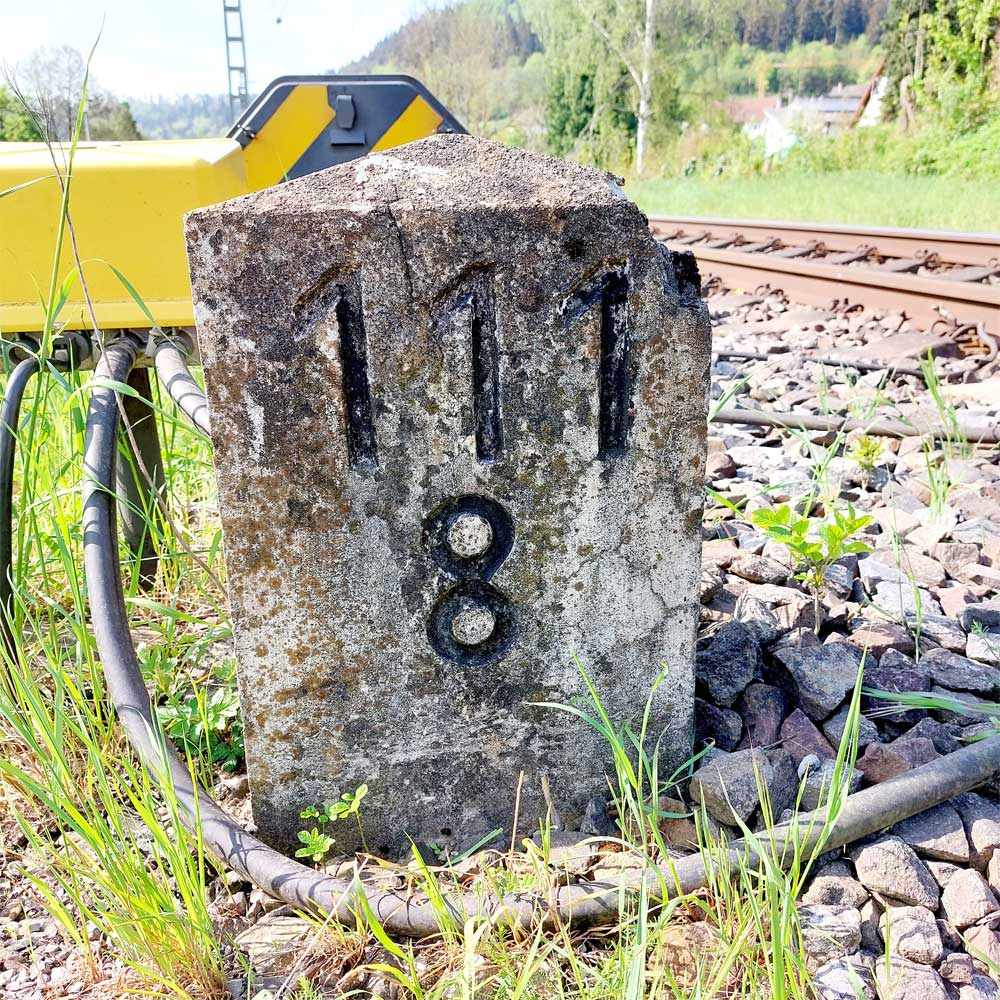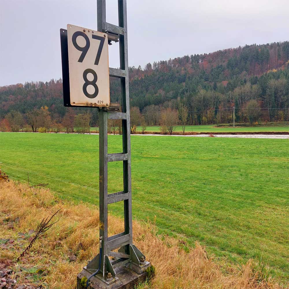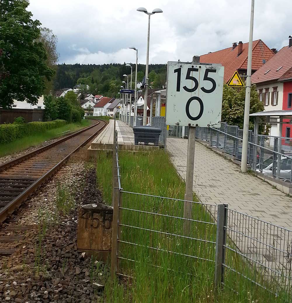 km 119,02 der Strecke Offenburg 0,0 - Villingen 85,86 - Donaueschingen 99,72 - Immendingen 119,02 - Singen (Hohentwiel) 149,14 |