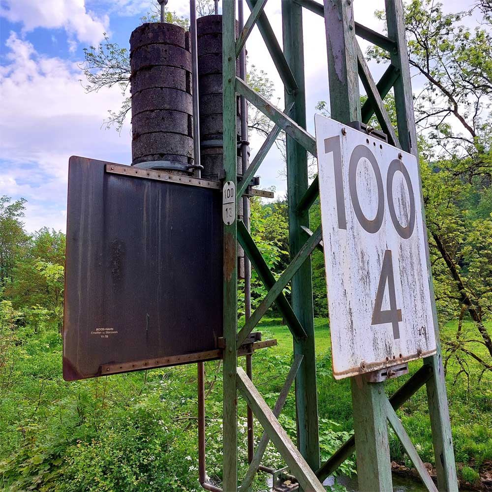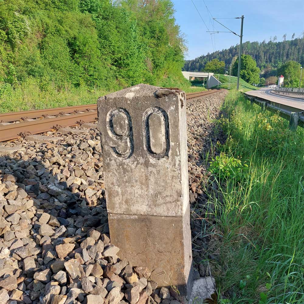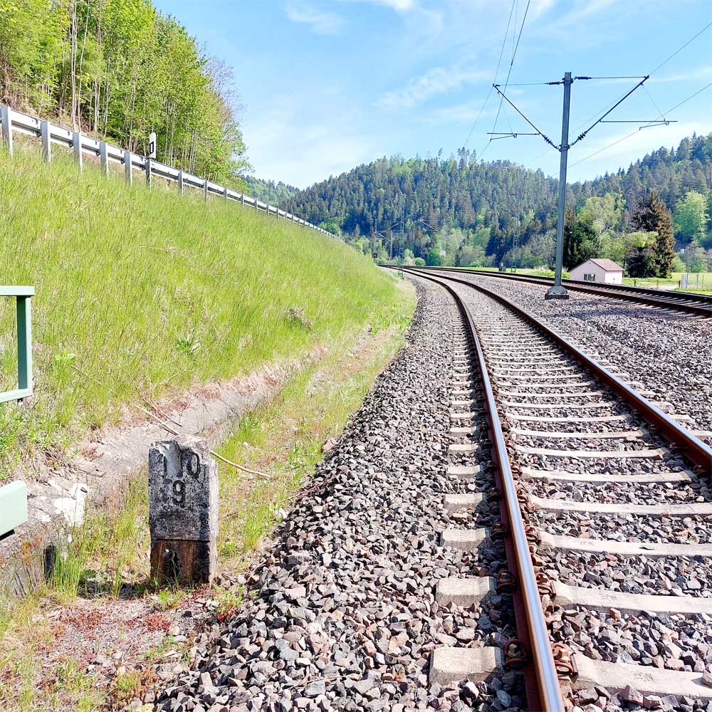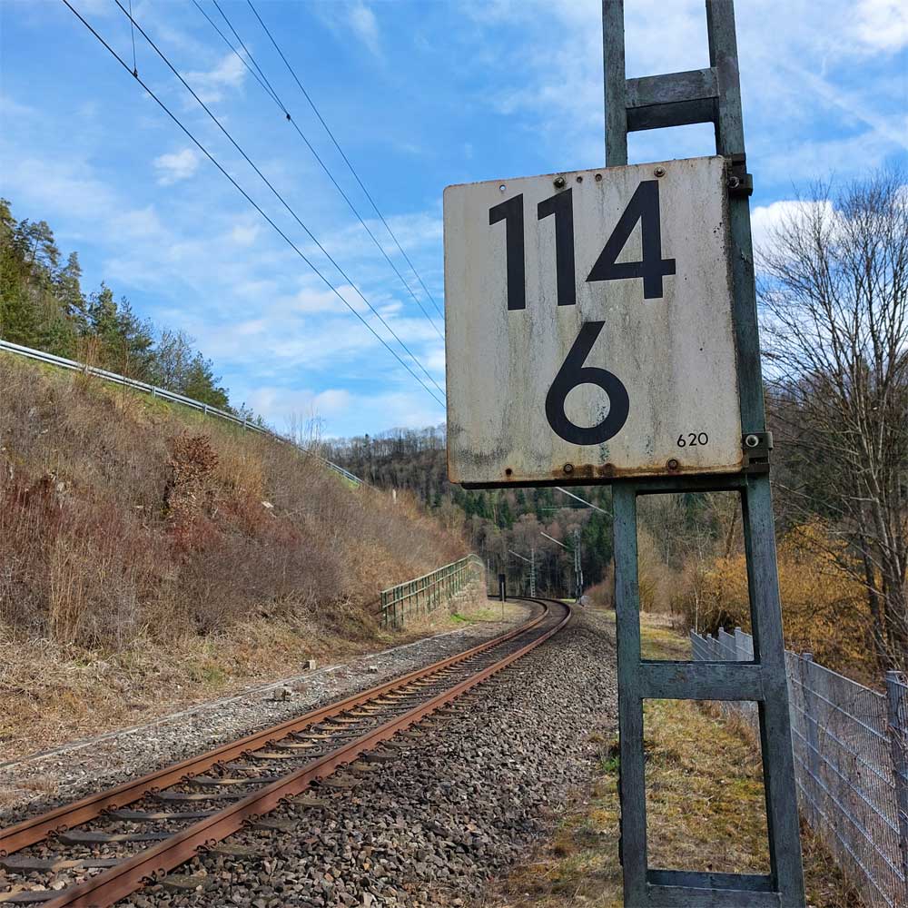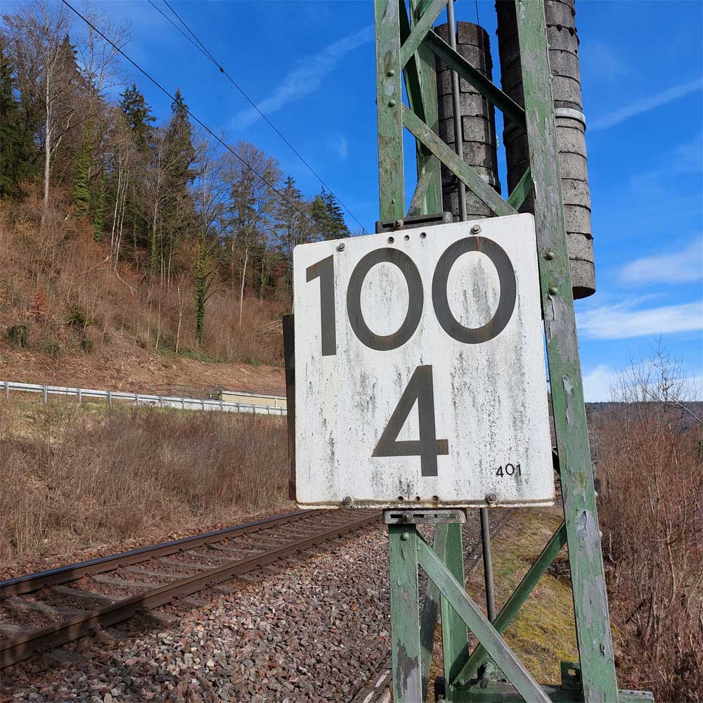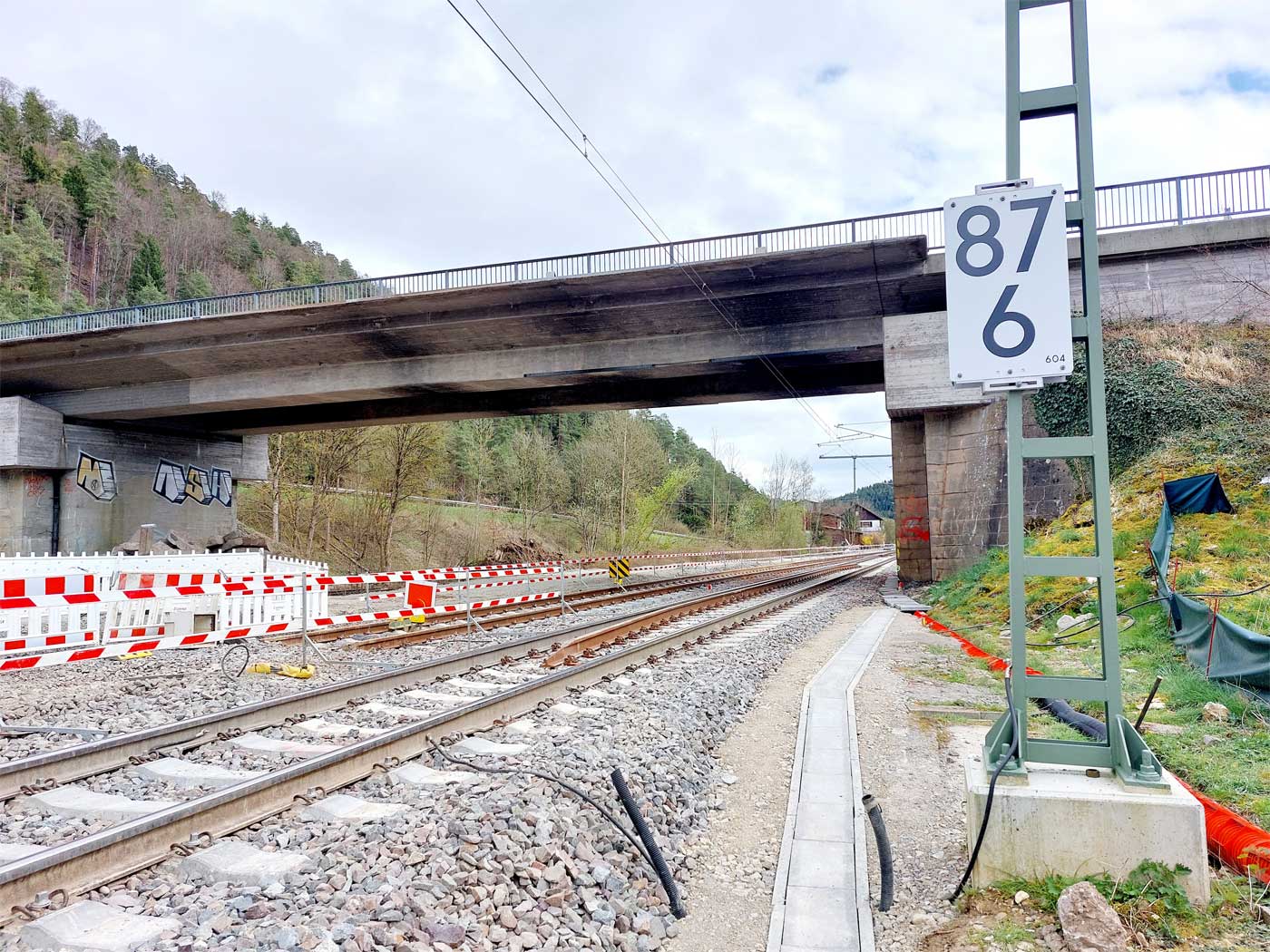 km 119,02 der Strecke Offenburg 0,0 - Villingen 85,86 - Donaueschingen 99,72 - Immendingen 119,02 - Singen (Hohentwiel) 149,14 |