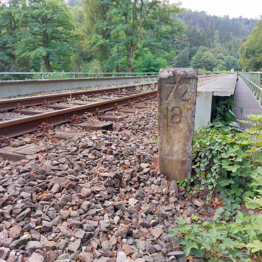 Das noch heute existierende Primtalviadukt der am 26. Sept. 1971 stillgelegten Strecke Balingen (Württ) 0,0 - Rottweil 28,93