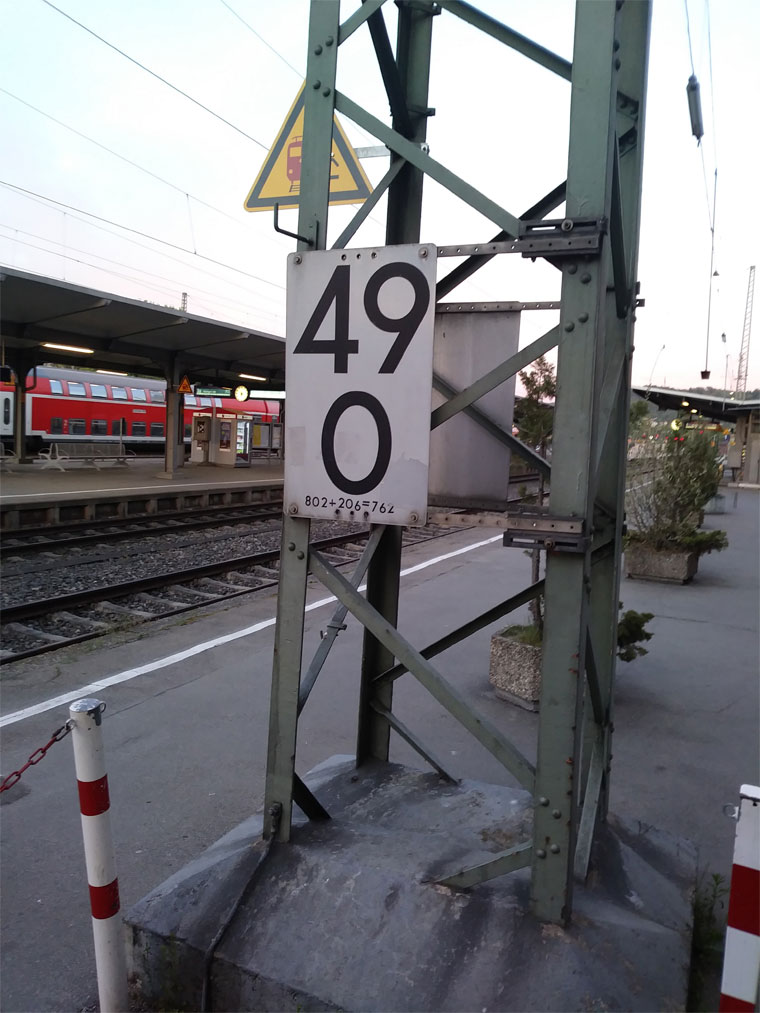 Plochingen | 0,0 | km 22,95 der Strecke Stuttgart Hbf 0,0 - Ulm Hbf 93,98 - Friedrichshafen Stadt 197,56 mit Abzw. von Ulm Hbf 93,98 - km 94,950 (n. Neu-Ulm) (siehe auch Tabelle 3, Ziffer 10) |