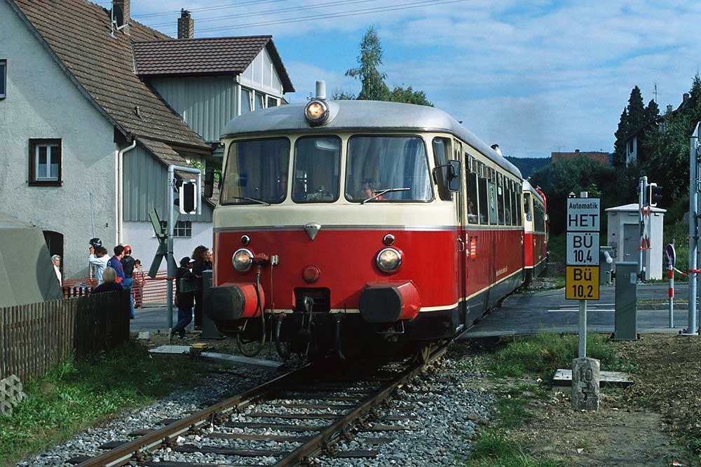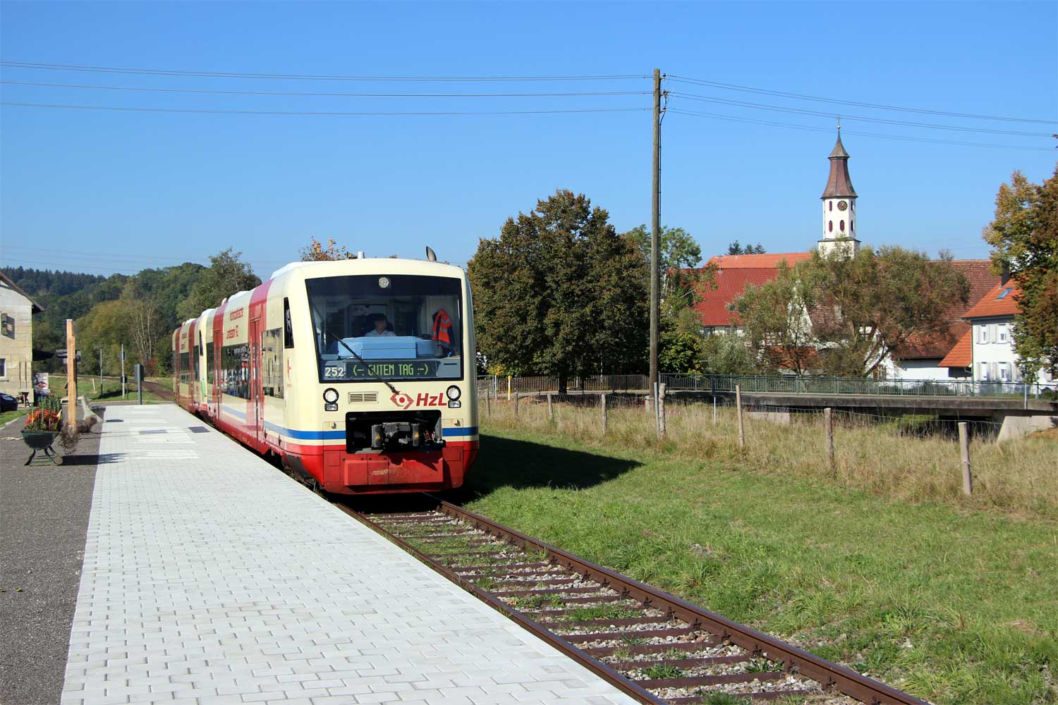 km 10,5 in Wahlwies - HzL-Schienenbusgarnitur und zwei HzL-NE81-Tw