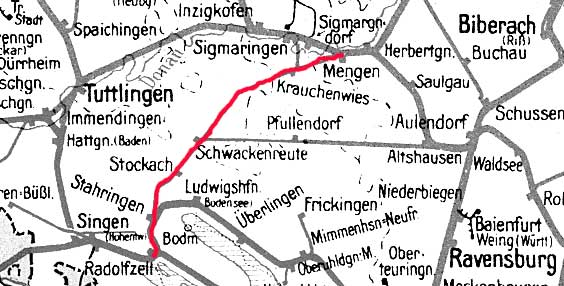 Radolfzell 0,02 - Schwackenreute 27,65 - Krauchenwies 47,73 - Mengen 56,854