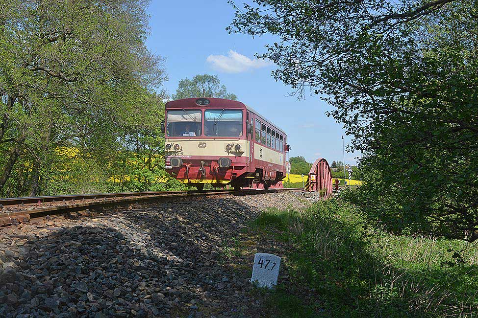km 47,7 zwischen Protivec (Protiwitz) und Záhořice (Sahors, Sahorz)