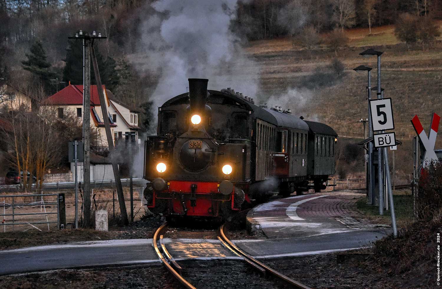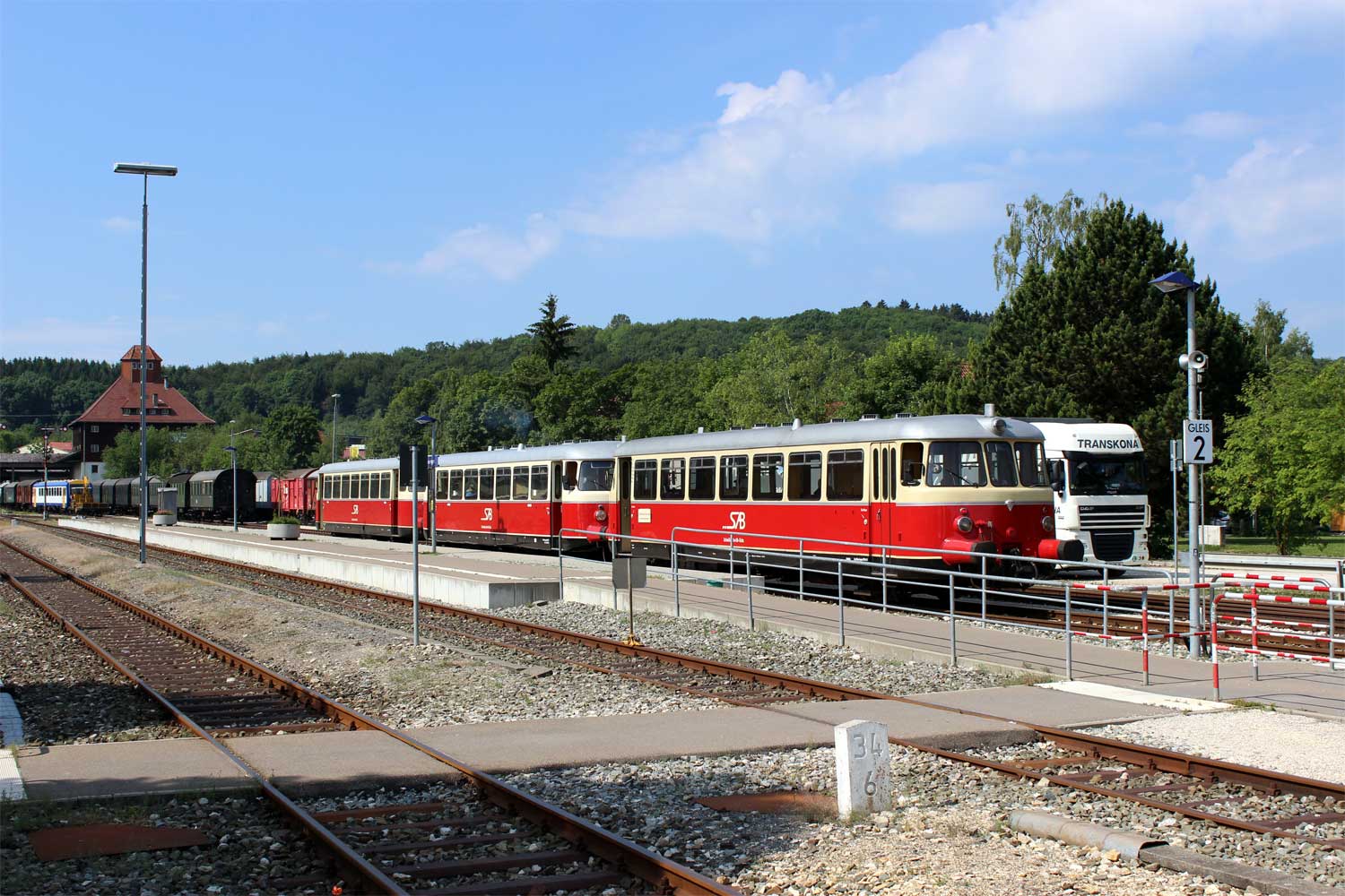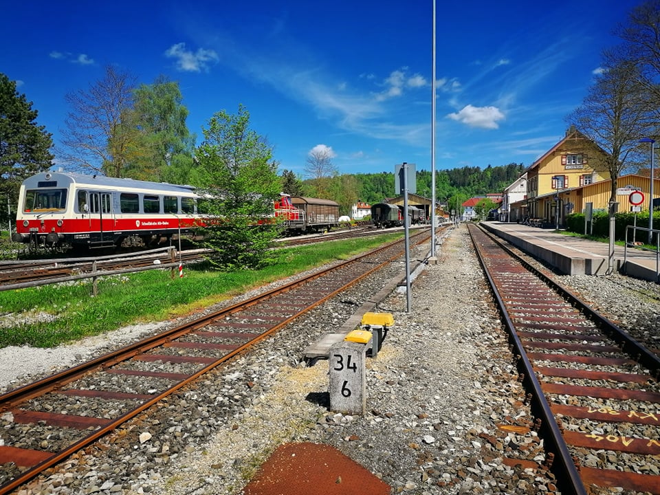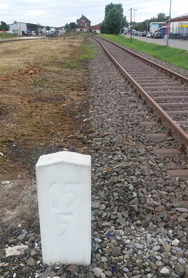 km 34,4 (links neben dem Zug) gehört zur Strecke