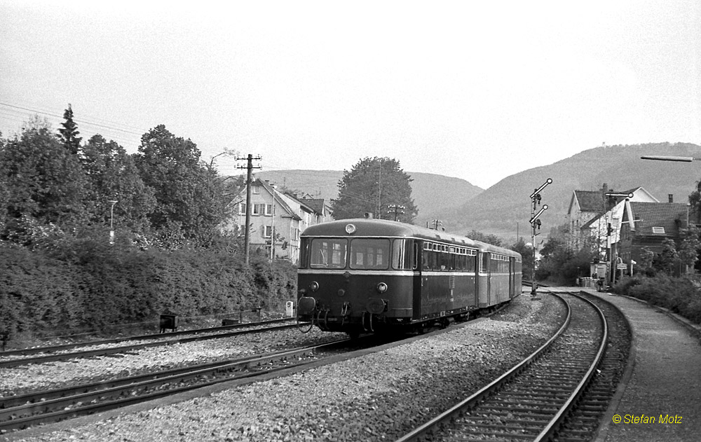 Lichtenstein Zwischen Honau und Lichtenstein muss ein Höhenunterschied von 179 Metern überwunden werden. Damit die Nebenbahn hier möglichst einfach und damit kostengünstig trassiert werden konnte, entschied sich die damalige Königlich Württembergische Staatseisenbahn erstmals für den Bau einer Zahnradbahn und die Beschaffung spezieller Fahrzeuge, die sowohl auf den herkömmlichen Reibungsstrecken als auch auf der Zahnradbahn eingesetzt werden konnten. Lokomotiven, Wagen und Zahnstangen lieferte die Maschinenfabrik Esslingen, die in dieser Zeit zu einem weltweit führenden Hersteller für diese Technologie wurde. So konnte der Albaufstieg zwischen Honau und der Station Lichtenstein auf einem 2,2 km langen Streckenstück mit einer Steigung von 10% überwunden wurden. Dabei wurde im Gleis eine Riggenbach´sche Leiterzahnstange der Bauart Bissinger-Klose verwendet. Für den Betrieb wurden speziell ausgerüstete Dampflokomotiven sowie Personen- und Packwagen mit Bremszahnrad beschafft, die durchgehend von Reutlingen über die Zahnradbahn bis auf die Schwäbische Alb eingesetzt werden konnten. Der Güterverkehr spielte auf diesem steilen Abschnitt keine große Rolle, bereits 1951 gab nur noch einen Stückgut-Kurswagen. Der Personenverkehr war hingegen beachtlich, besonders durch den Ausflugsverkehr am Wochenende. Allerdings nahmen, wie auf vielen anderen Nebenbahnen auch, durch den zunehmenden Individualverkehr ab den 50er Jahren die Beförderungszahlen stetig ab, so dass am 28. Juli 1969 der Abschnitt Honau - Kleinengstingen und damit auch die letzte DB-Zahnradstrecke stillgelegt werden musste. Nach der Stilllegung gab es 1969 nochmals eine letzte Schienenbus-Sonderfahrt anläßlich des Morop-Kongress, im Dezember 1970 wurde die Zahnradbahn dann schließlich abgebaut. |