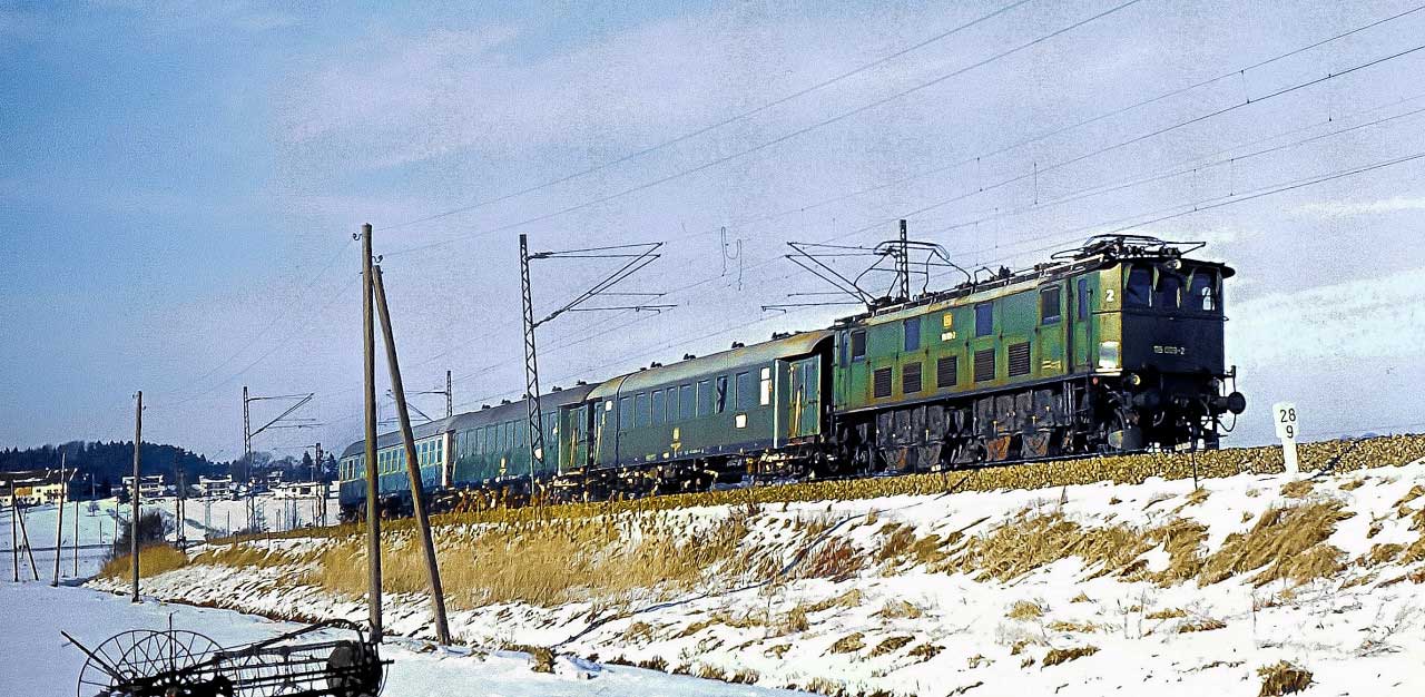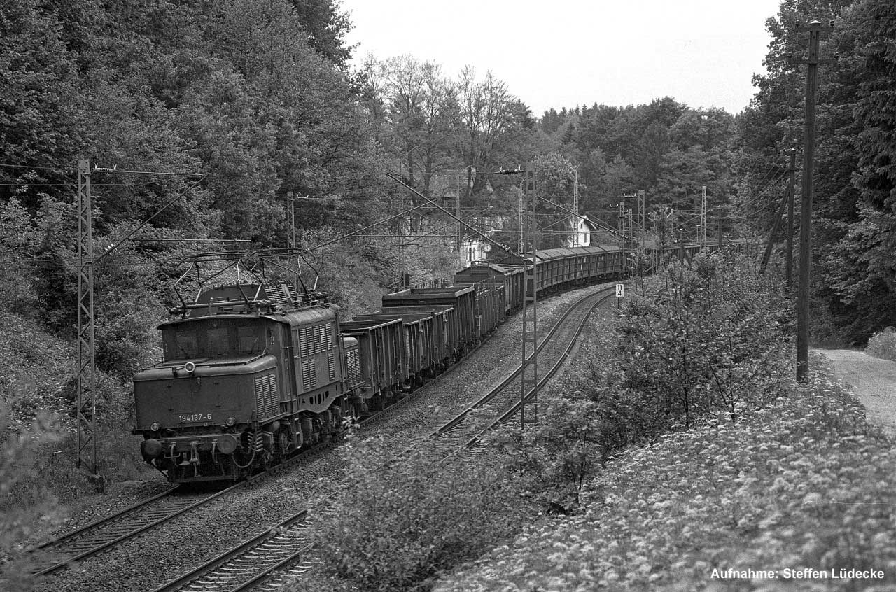 km 80,9 in Freilassing - 194 041 vom Bw Freilassing fährt an ihrem Zuhause vorbei (um 1980)