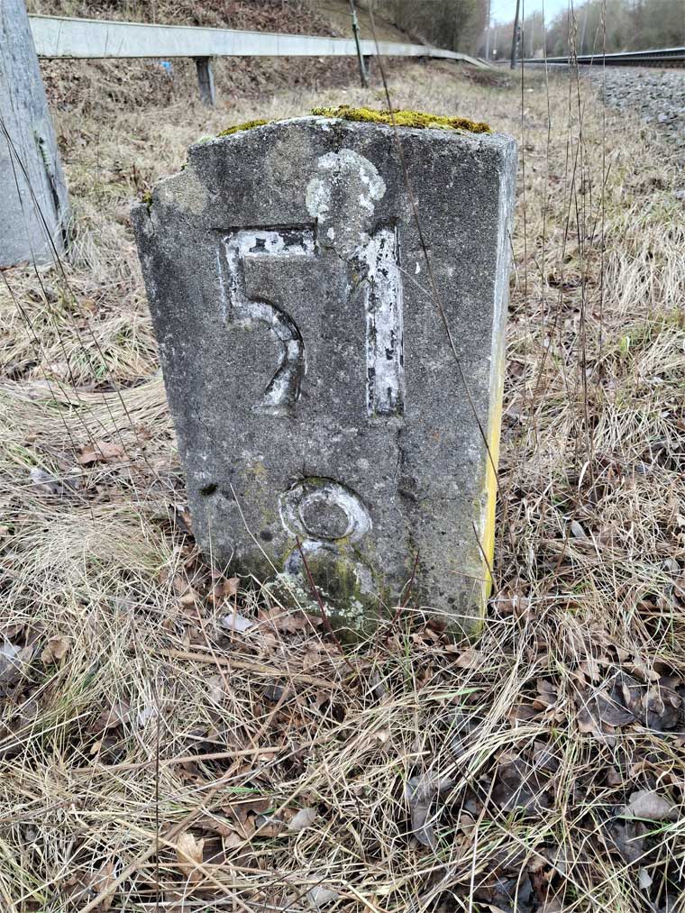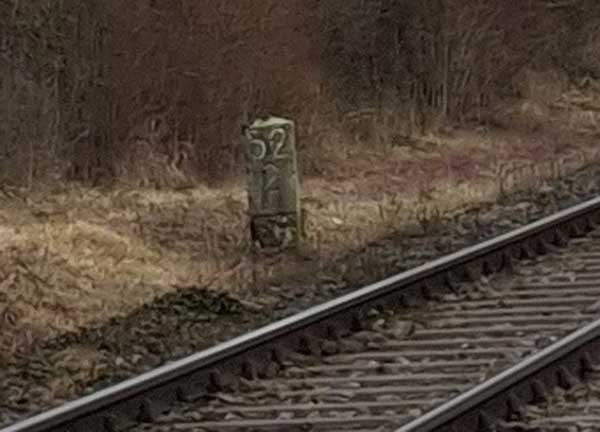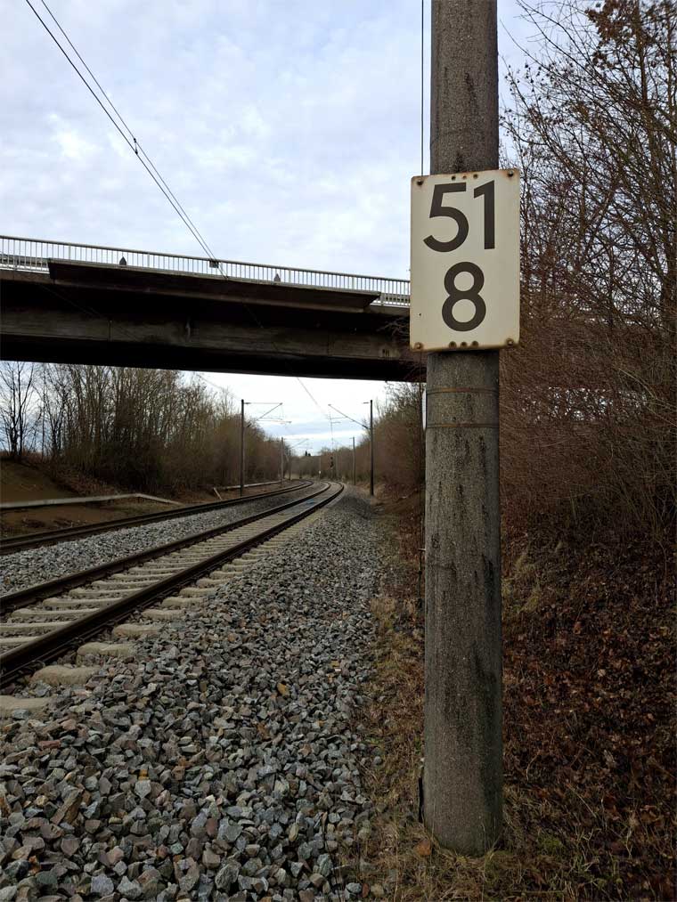 Unten km 1,0 (Gegenrichtungsgleis) der Strecke