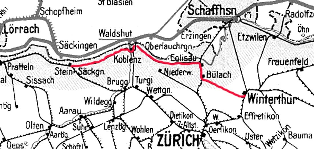 Winterthur 0,0 - Bülach 16,26 - Eglisau 22,25 - Koblenz 48,38 - Stein-Säckingen 74,45
