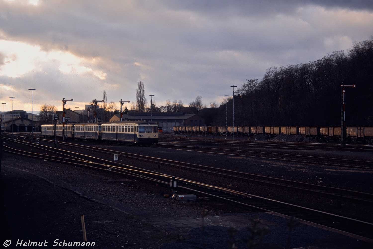 Worms 0,0 km 3,21 der Strecke [Neunkirchen (Saar) 13,64 - Landesgrenze Preußen/Bayern - Homburg km 0,0 = km 8,37 - Ludwigshafen (Rh) Hbf 106,535 (kommend)/105,613 (gehend)] - Landesgrenze Pfalz/Hessen km 125,10 = km 0,0 - Worms 3,21 - Mainz Hbf 49,09 [Umkilometrierung 1969 wegen Umbau und Verlegung Ludwigshafen (Rh) Hbf]