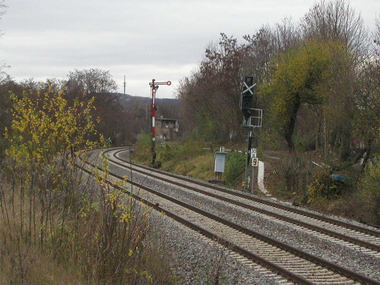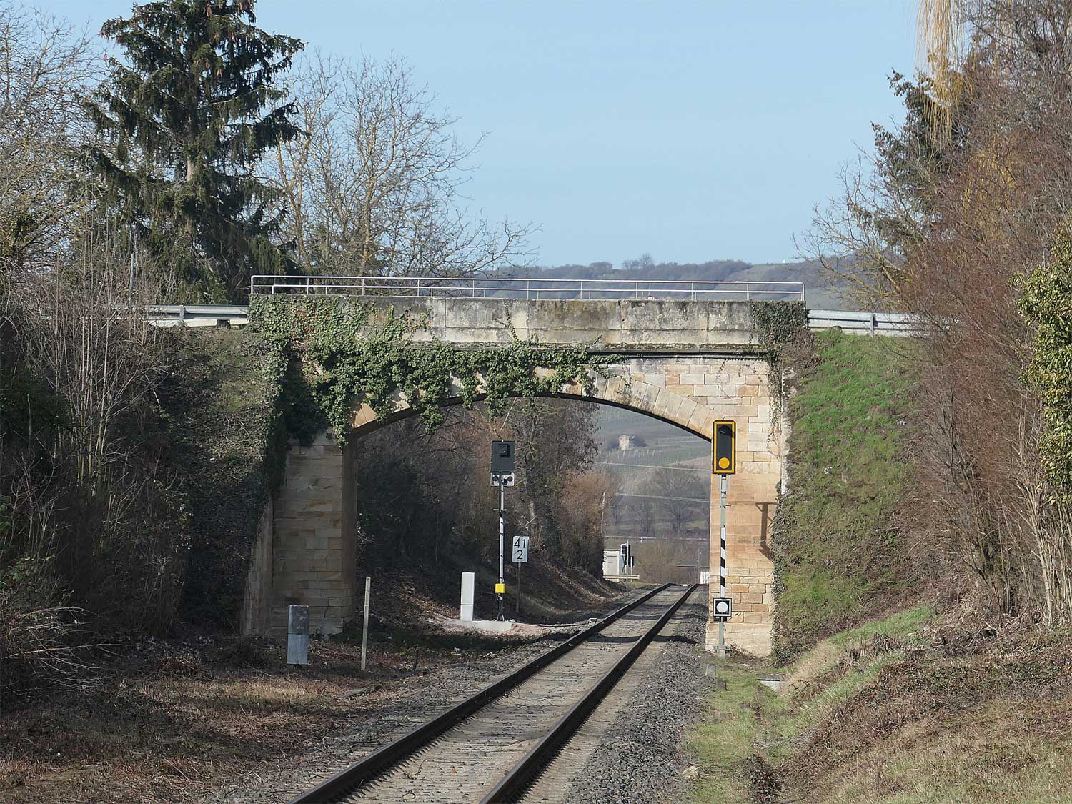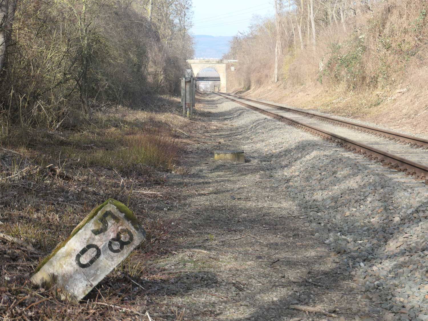 km 38,02 der Strecke Neustadt (Weinstr) 0,0 - Bad Dürkheim 13,51 - Grünstadt 28,45 - Monsheim 38,02