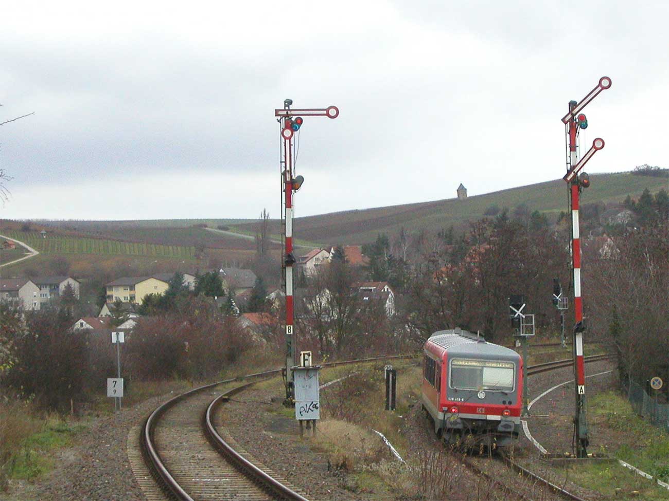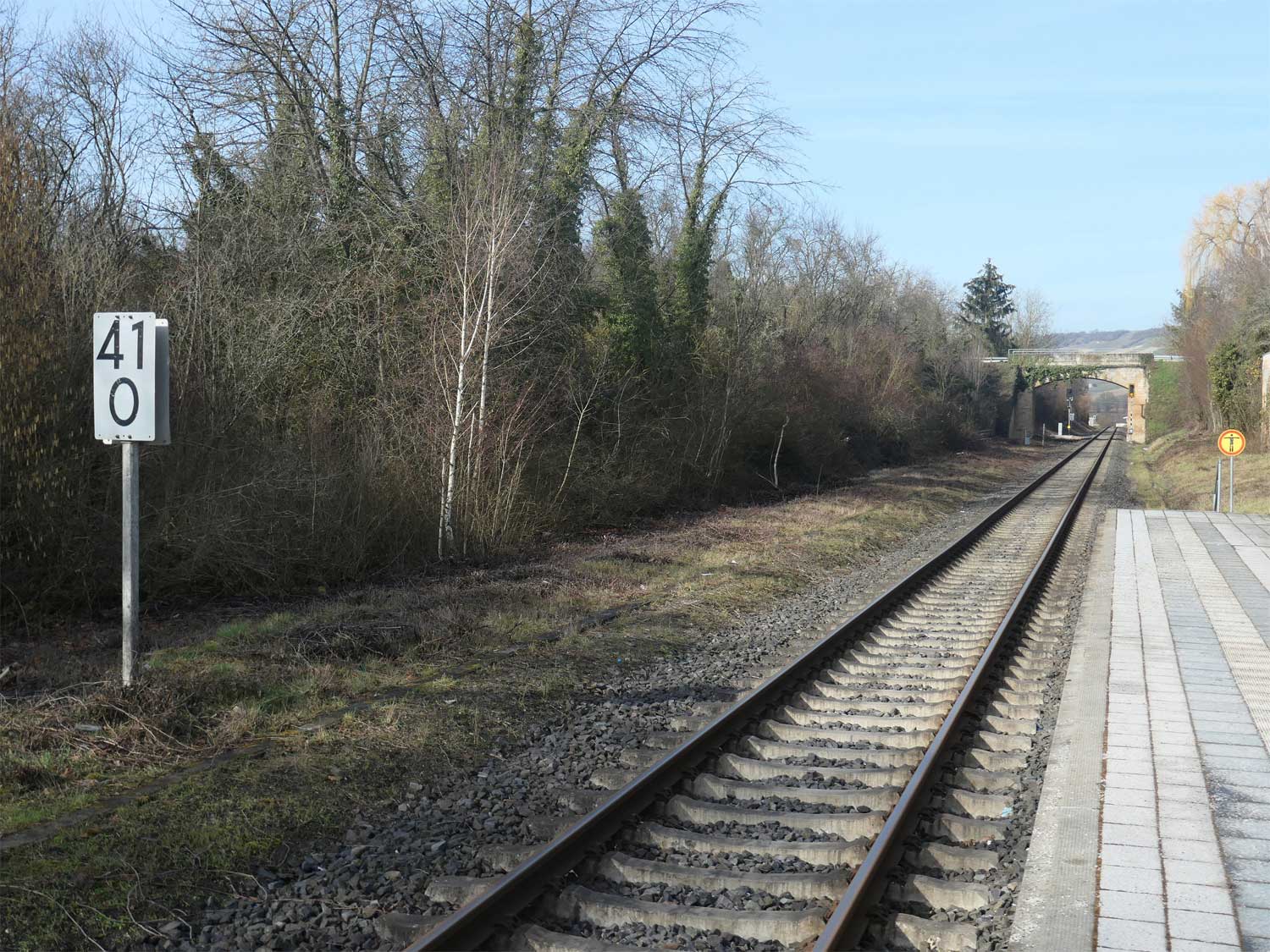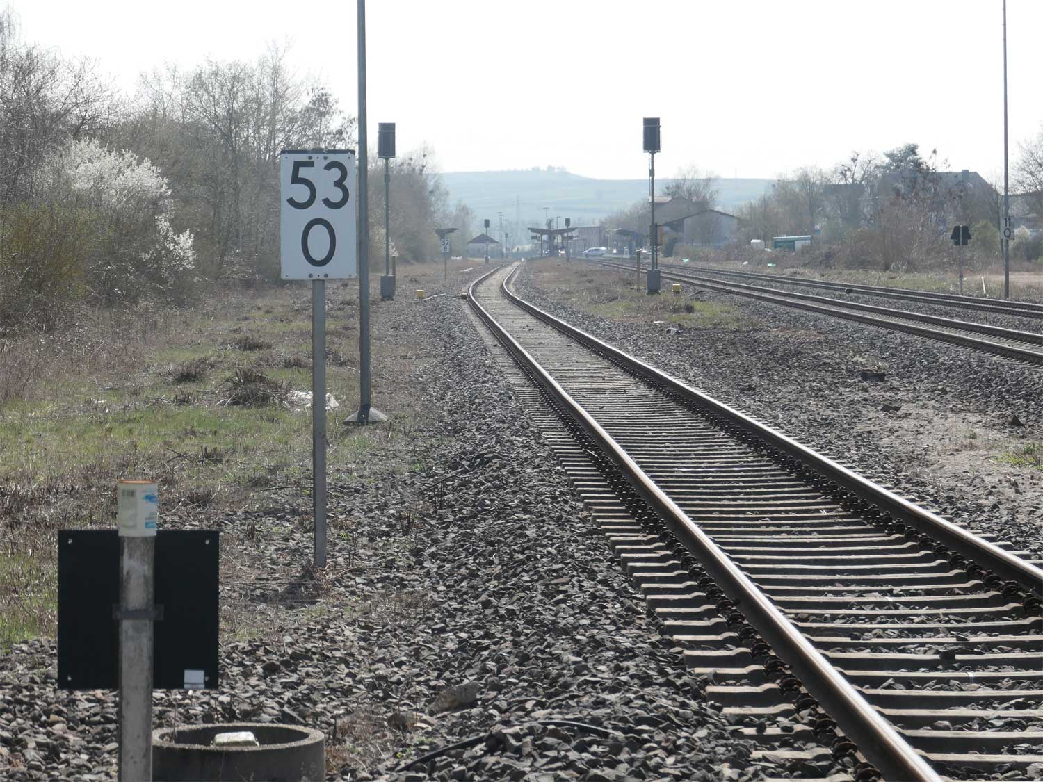 km 38,04 der Strecke Neustadt (Weinstr) Hbf -1,16 - Bad Dürkheim 13,51 - Grünstadt 28,45 - Monsheim 38,04  (3430/3436)