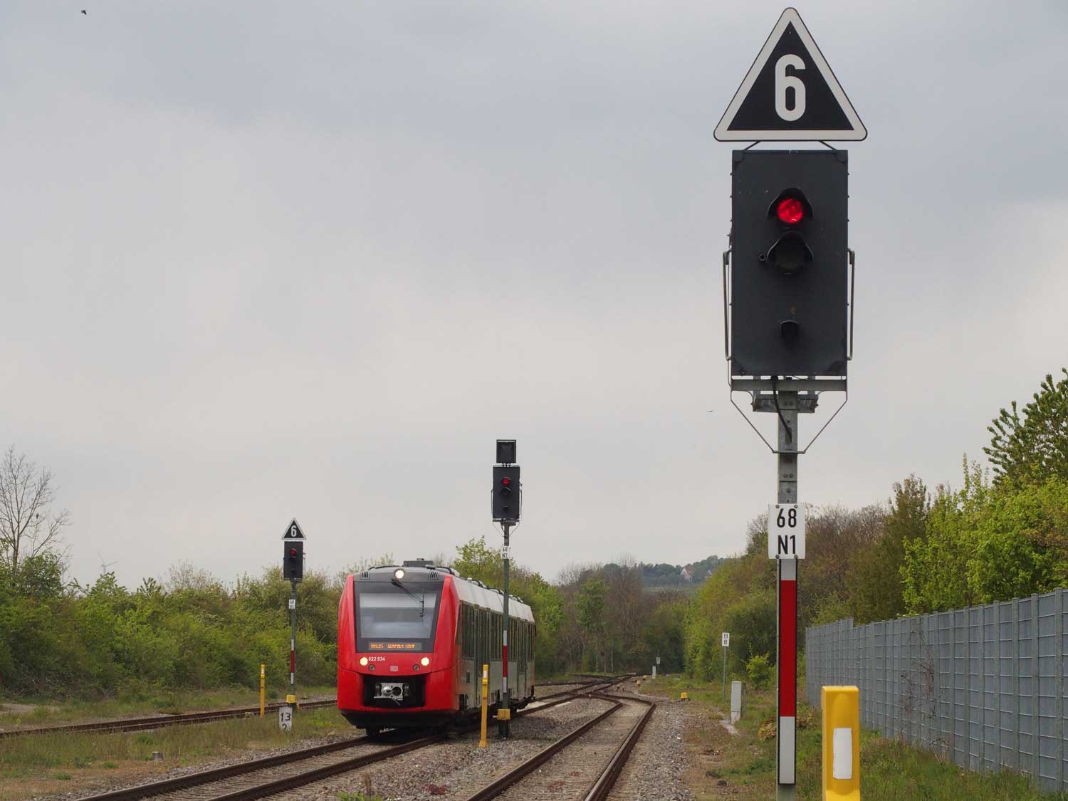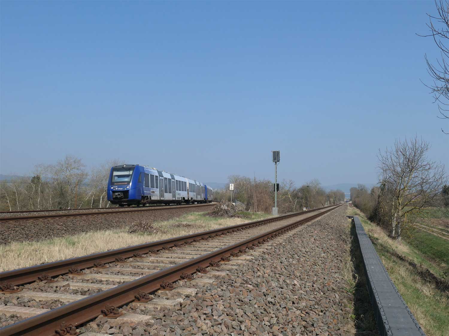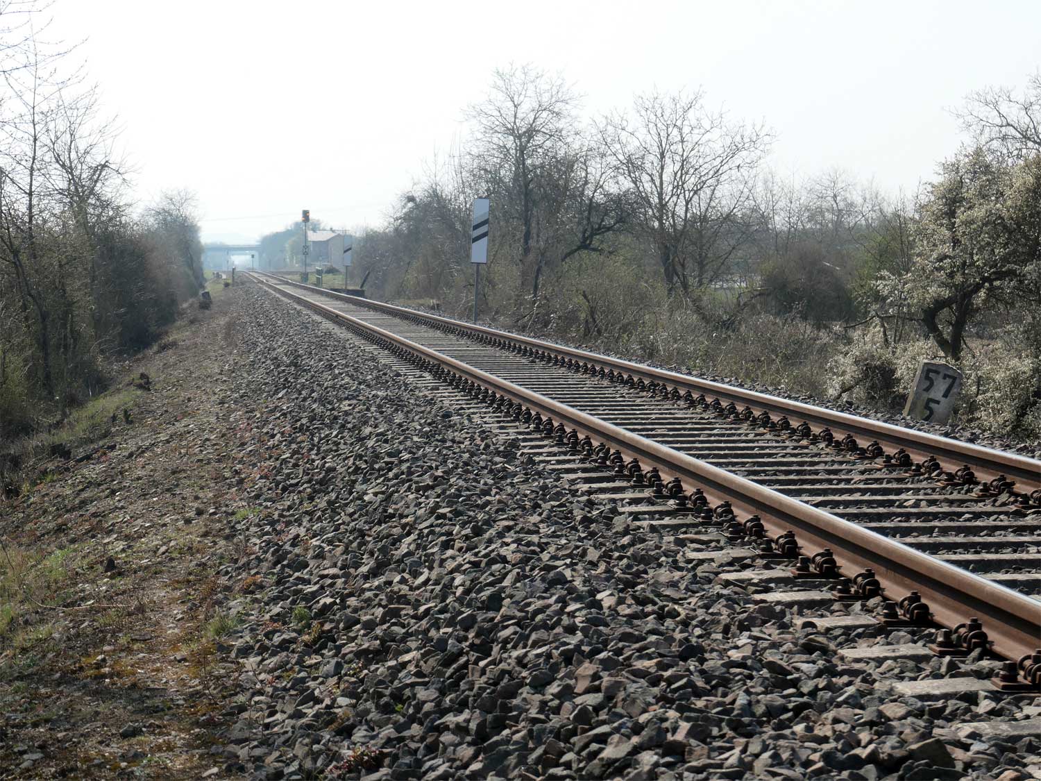 km 38,04 der Strecke Neustadt (Weinstr) Hbf -1,16 - Bad Dürkheim 13,51 - Grünstadt 28,45 - Monsheim 38,04  (3430/3436)