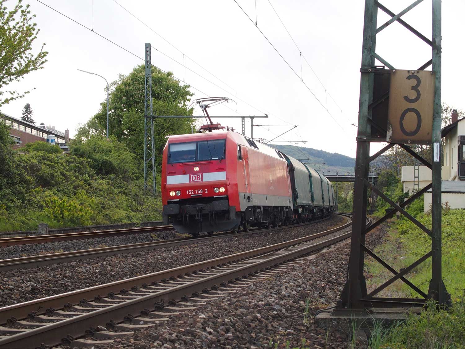 Bingen (Rhein) 63,38 km 0,97 der Strecke [Köln Hbf -1,97/-1,44 - Koblenz Hbf 91,20 - Bingerbrück 151,90] - ehemalige Landesgrenze Preußen/Hessen (Mitte Nahebrücke) km 152,40 = km 0,0 - Bingen (Rhein) 0,97 - Mainz Hbf 30,58