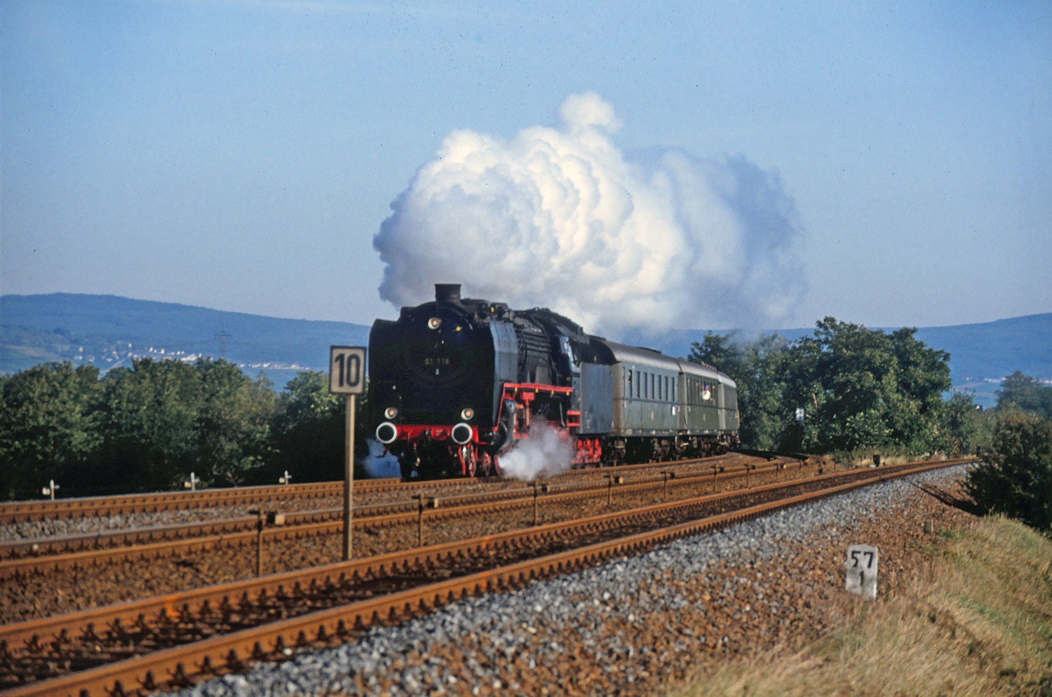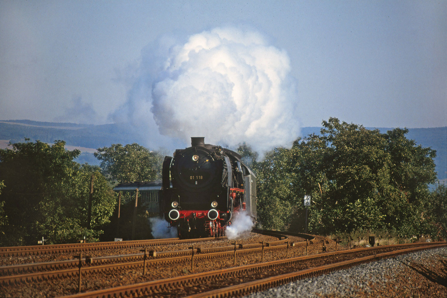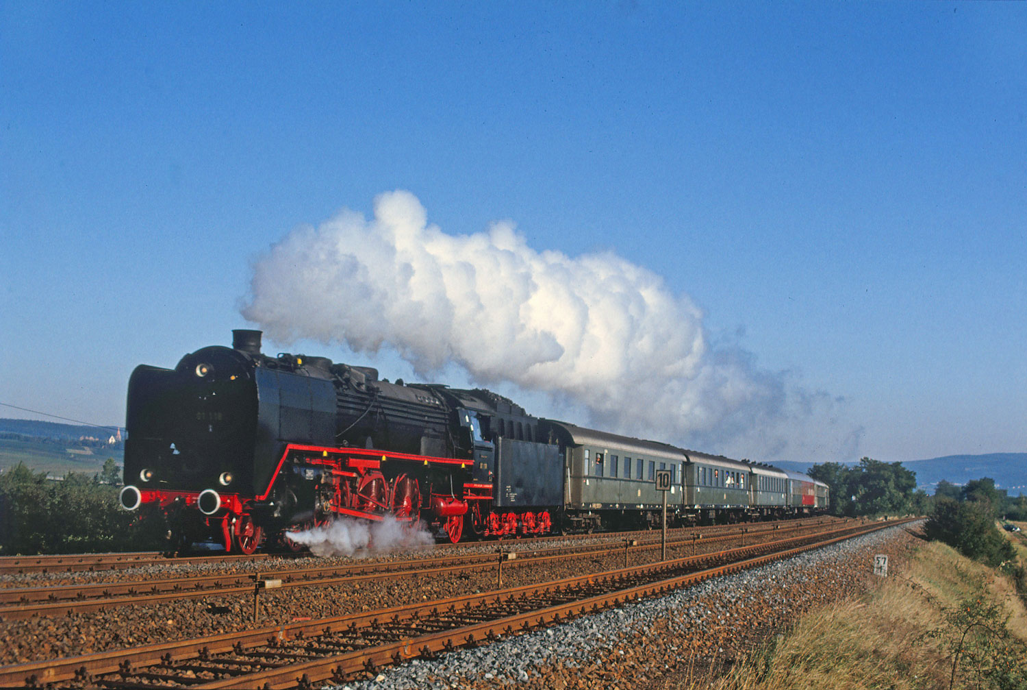 mit km 6,6 im Hintergrund und 01 118 mit Sonderzug