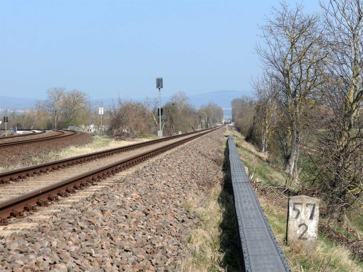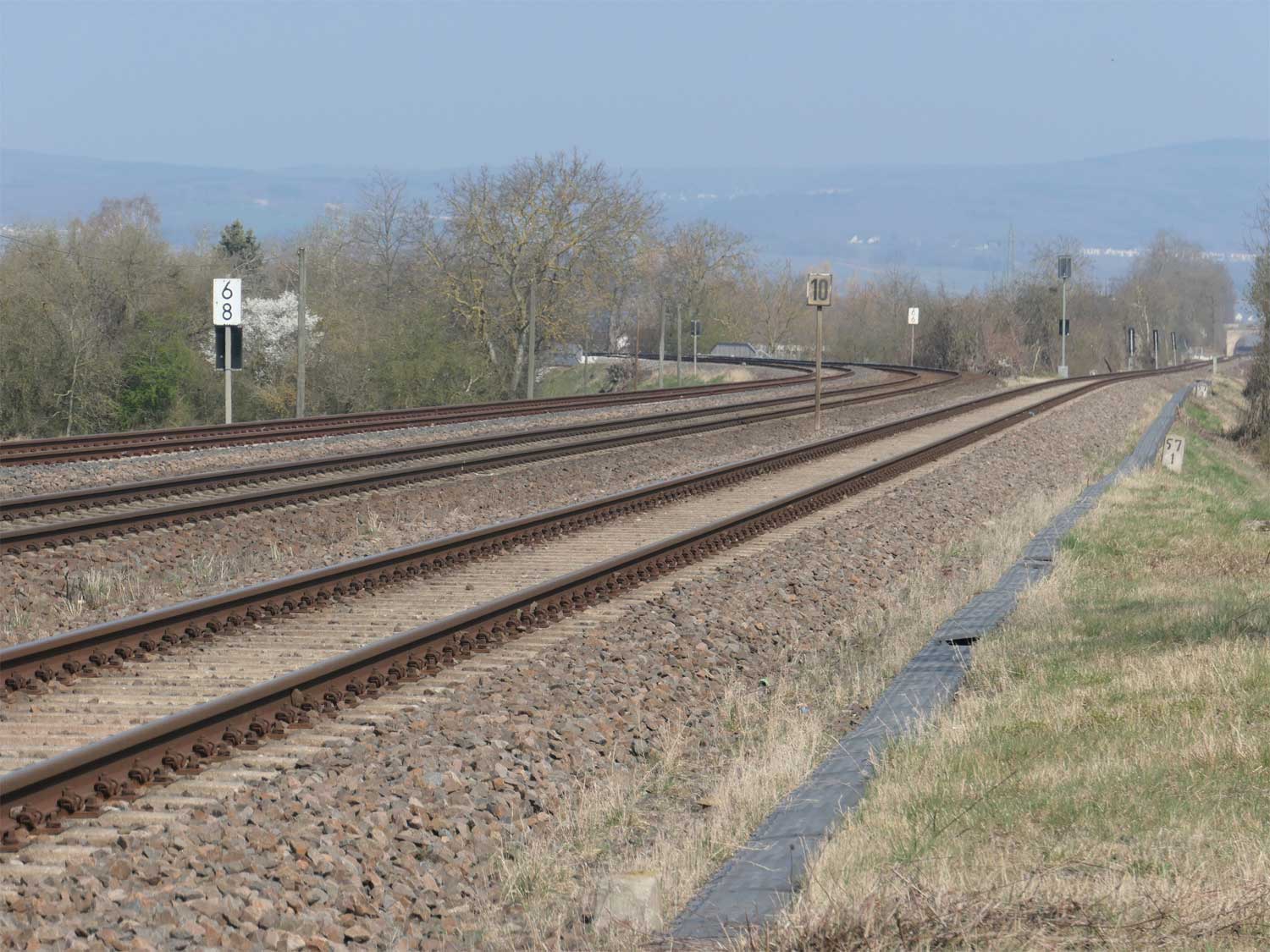 km 57,5 und km 57,6 zwischen Abzw Büdesheim-Dromersheim und Bingen (Rhein) - Blick Richtung Worms