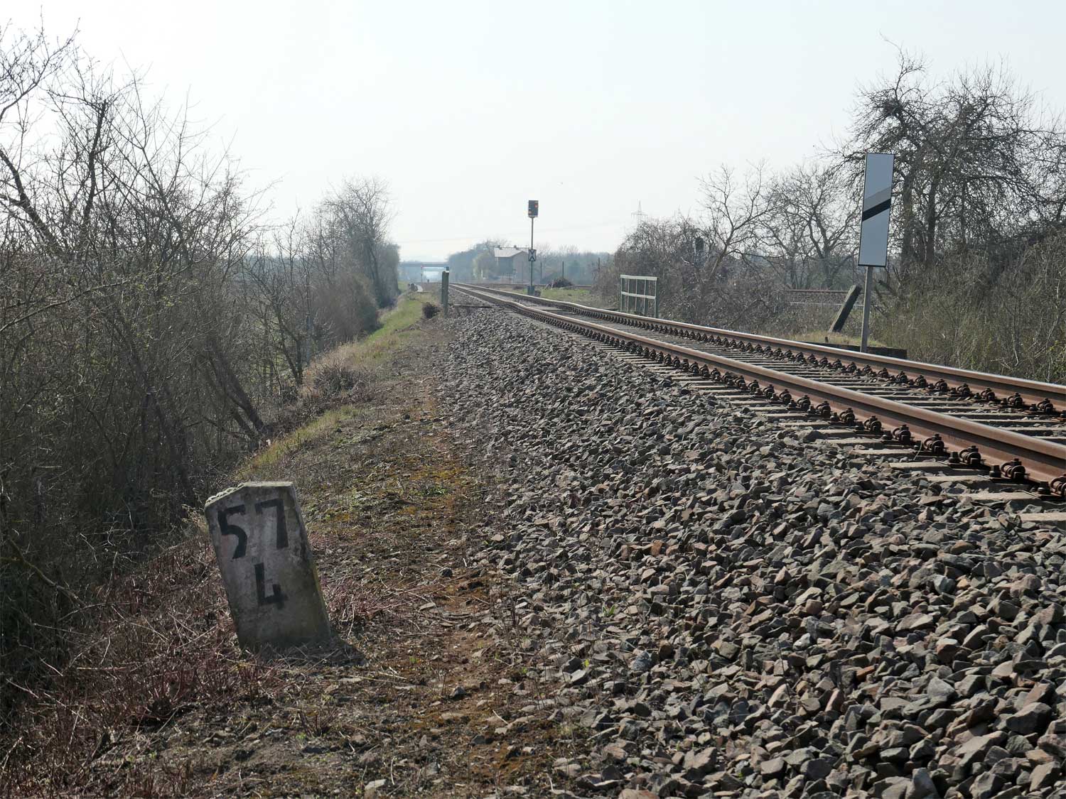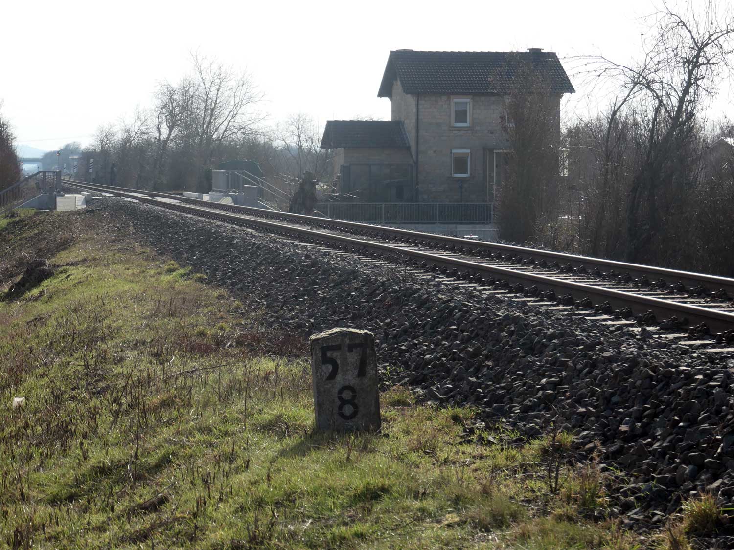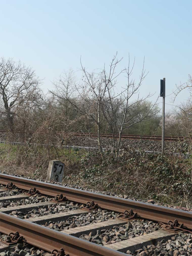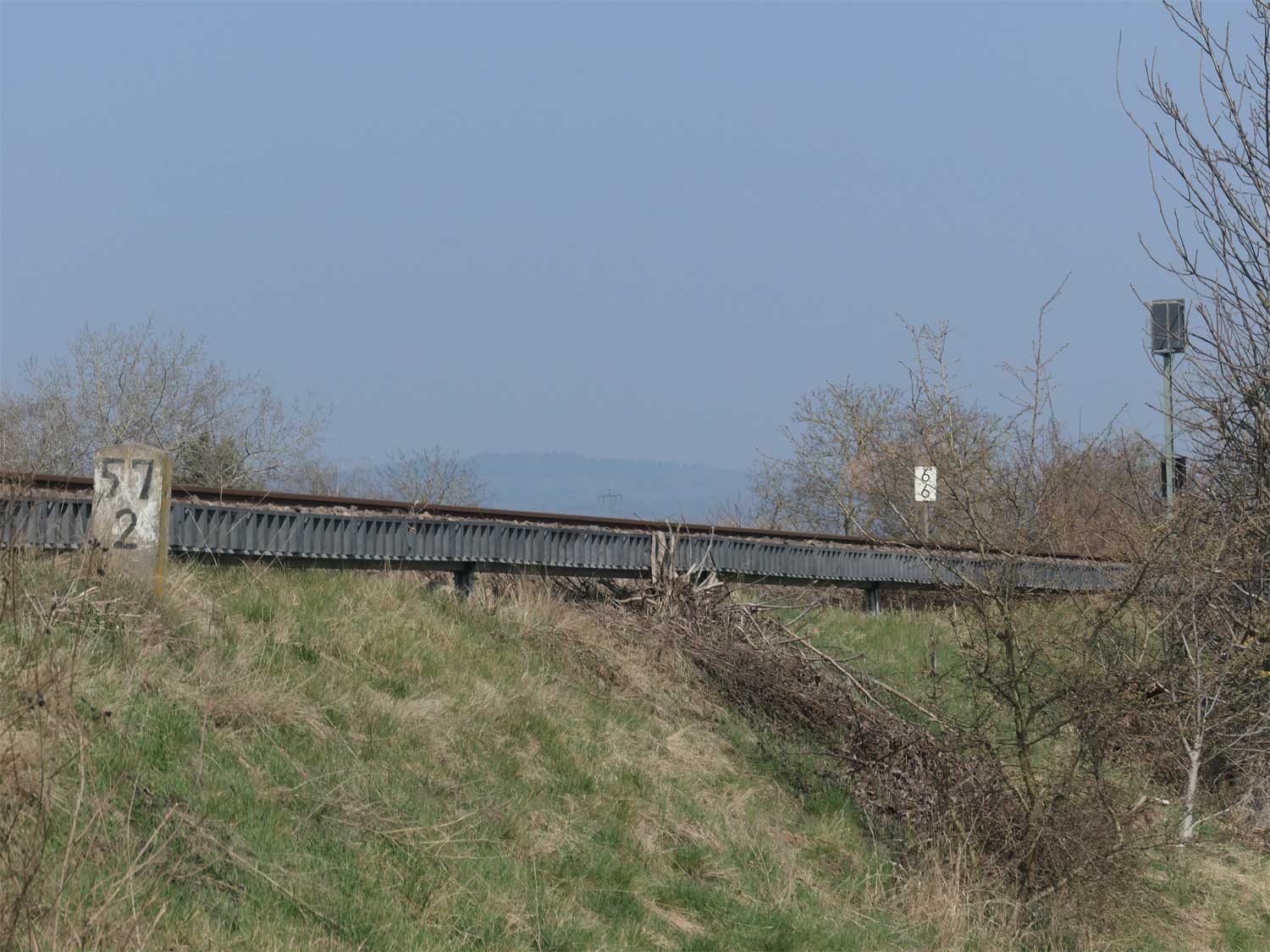 Rechts im Hintergrund ist km 57,3 zu erkennen