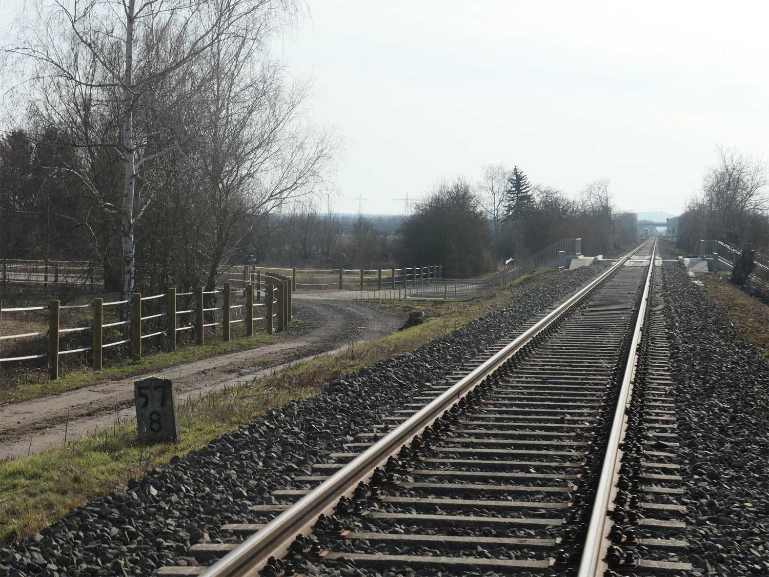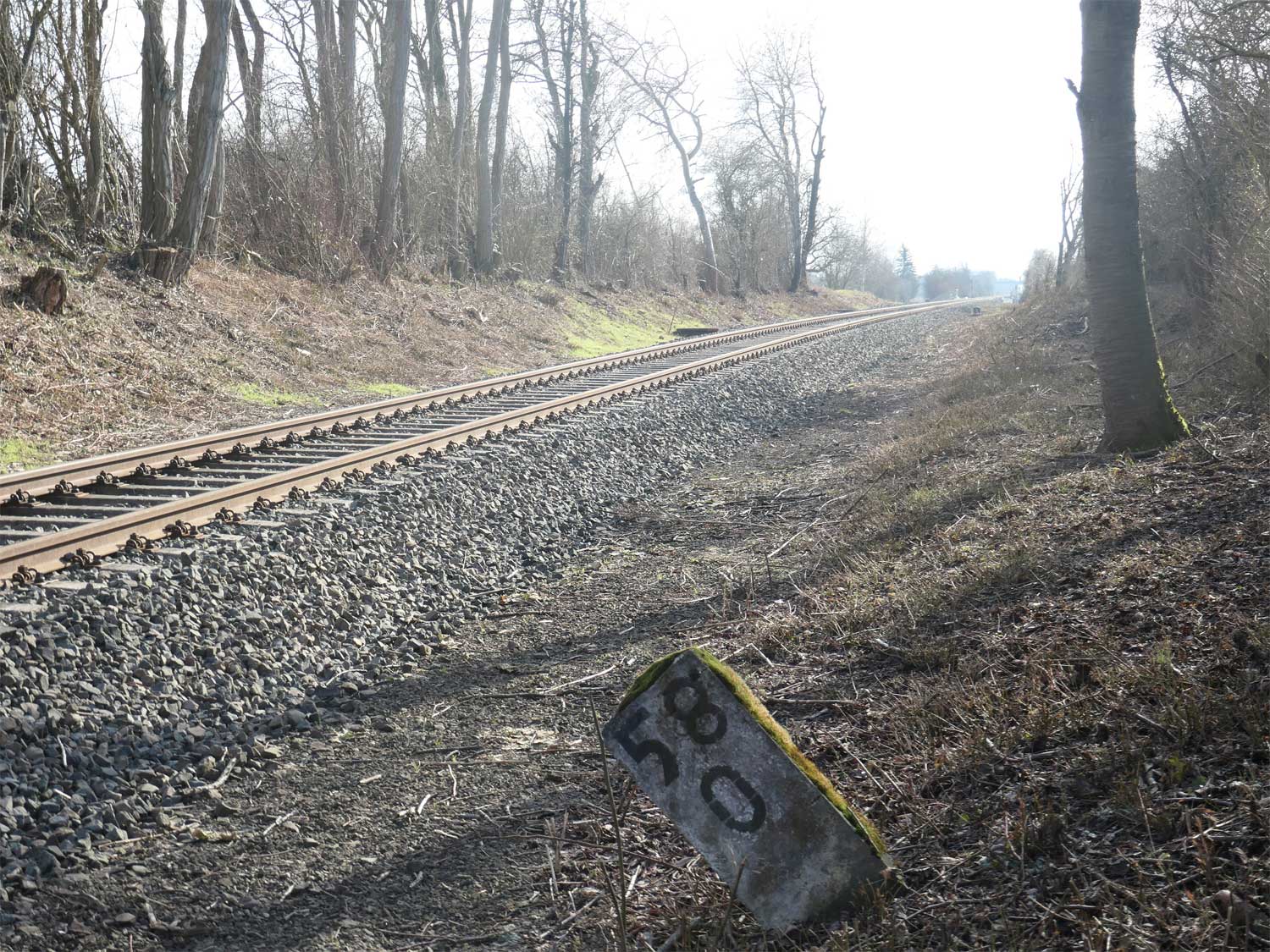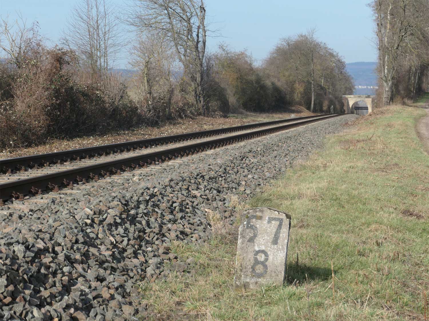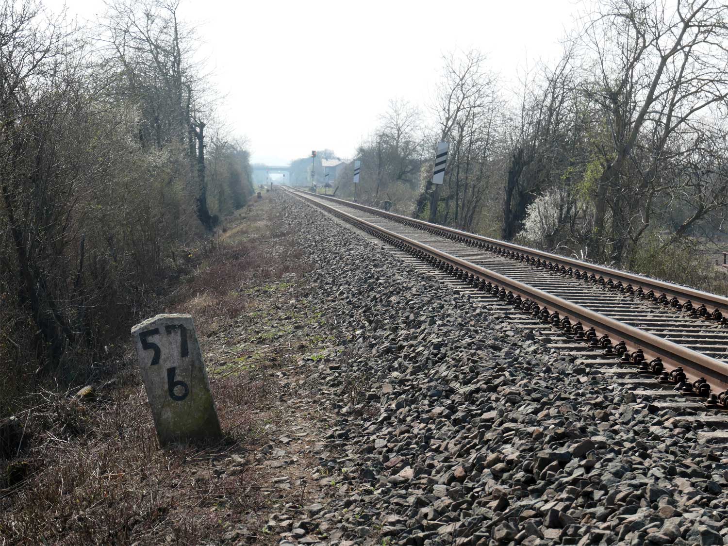Rechts im Hintergrund ist km 57,3 zu erkennen