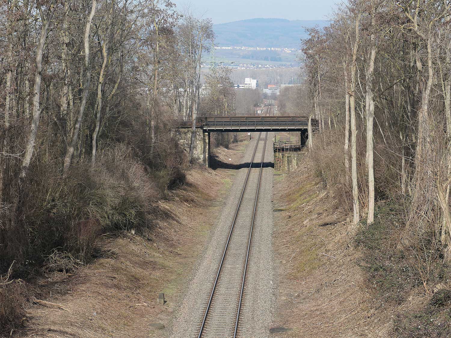 km 57,6 zwischen Abzw Büdesheim-Dromersheim und Bingen (Rhein) - Blick Richtung Bingen