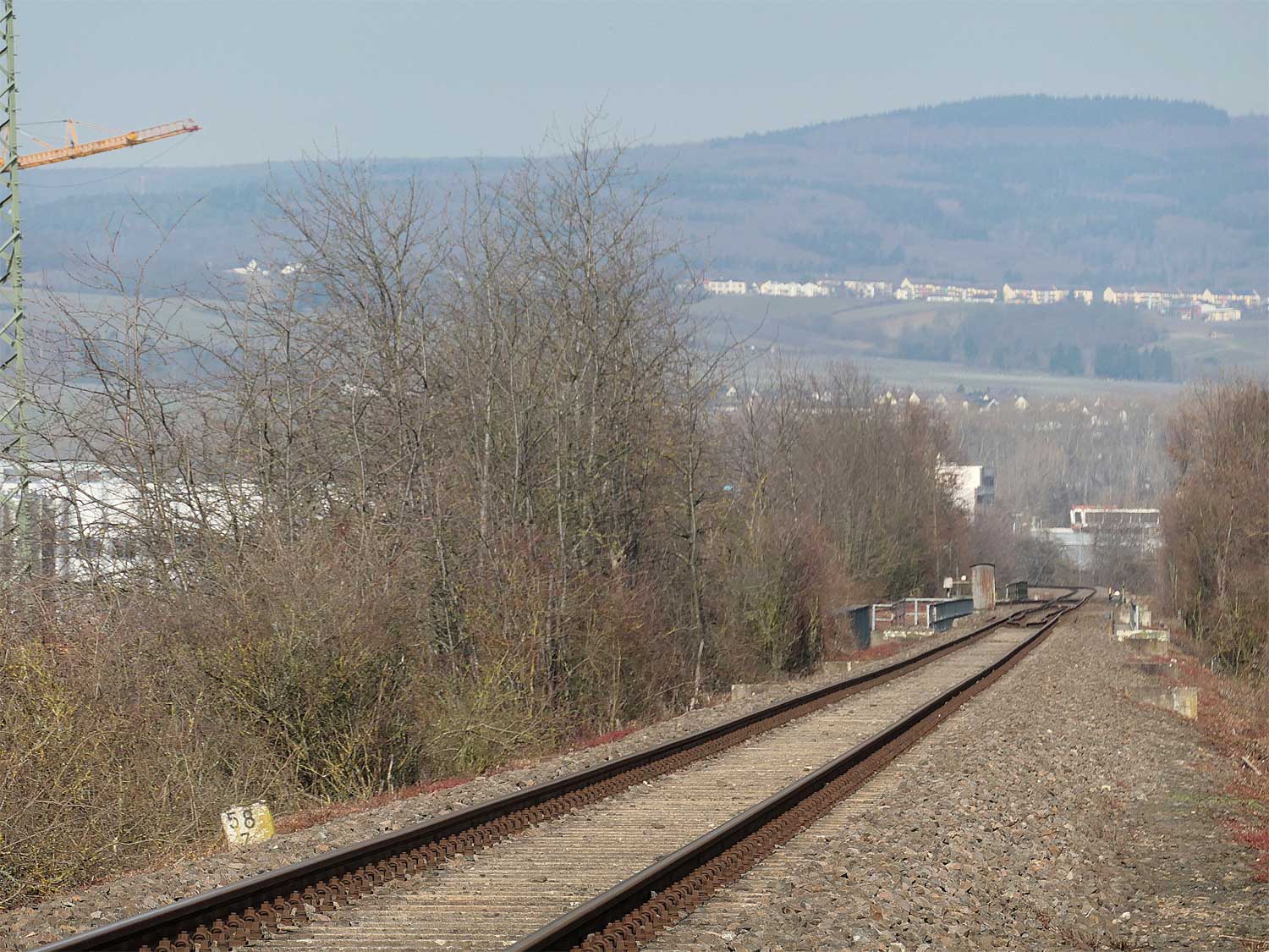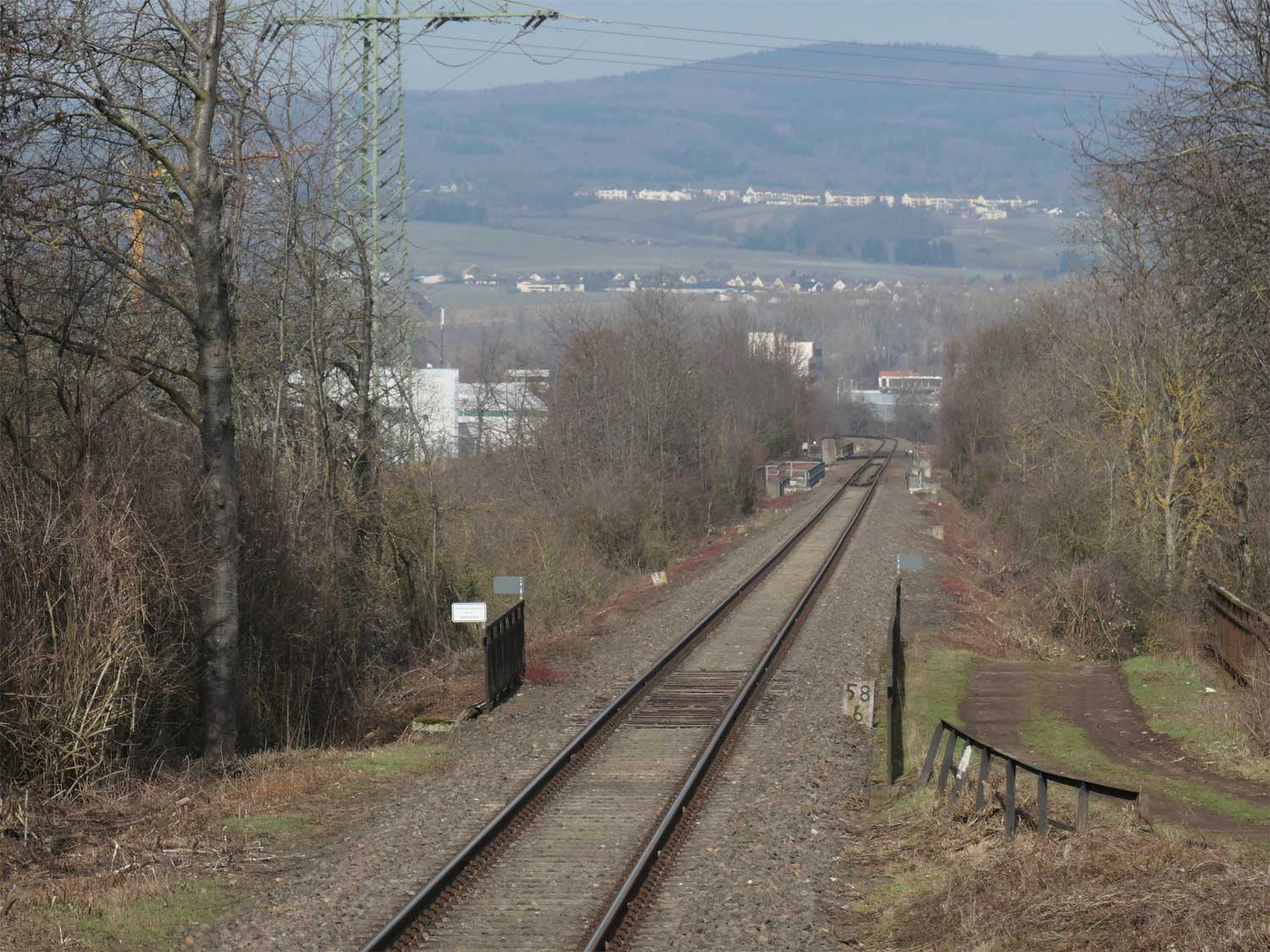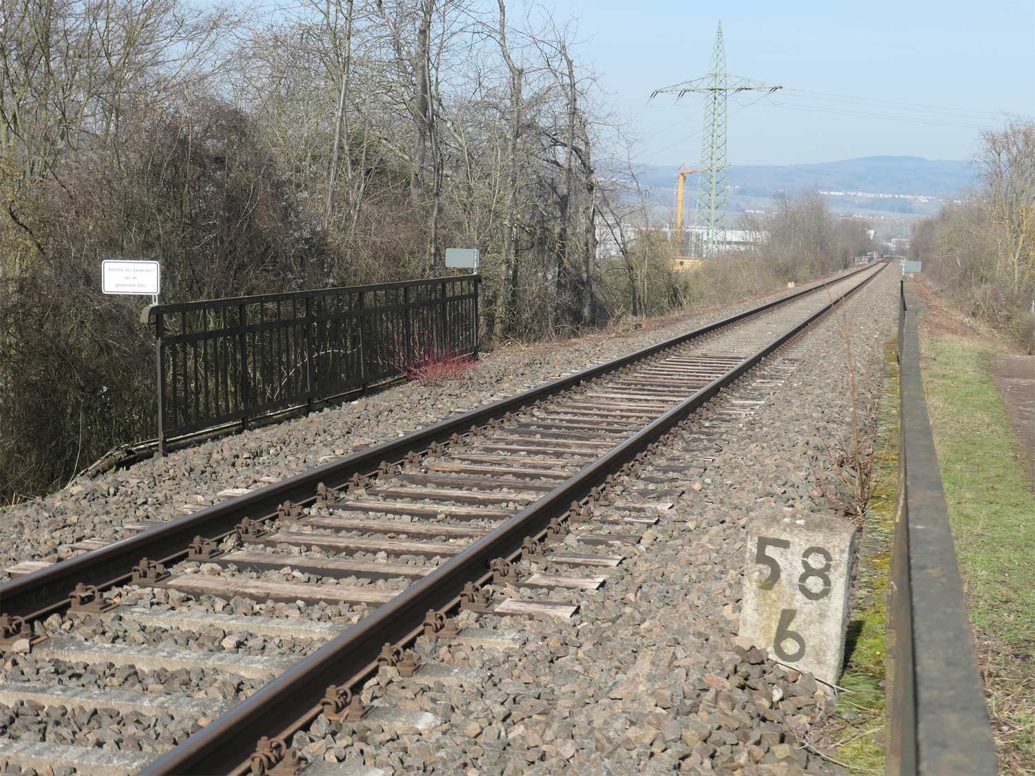 km 63,2 in Bingen (Rhein) Stadt - Blick Richtung Streckenende