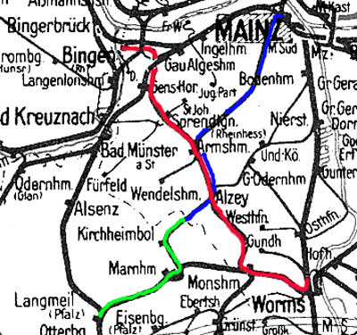 Langmeil (Pfalz) - Marnheim - Landesgrenze Pfalz/Hessen - Alzey - Mainz Hbf