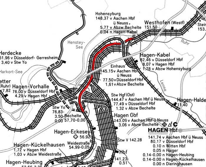 (Hagen-Eckesey -0,553 - Abzw Bechelte 0,0) - Abzw Einhaus 1,641 - Abzw Hagen-Hengstey 4,058 - Abzw Hohensyburg 5,672