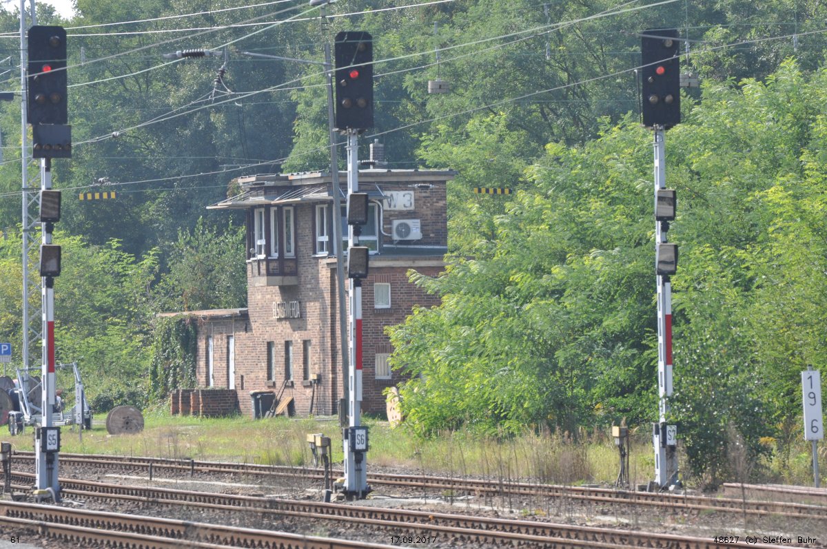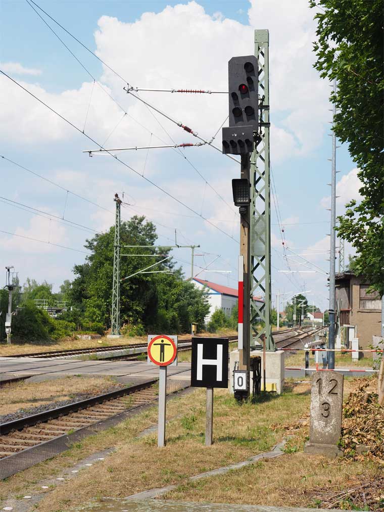 km 122,75 der Strecke [Berlin Anhalter Bf (bis 1882 Berlin Dresdner Bf) 0,01] - Abzw Berlin-Mariendorf 6,93 - Berlin-Marienfelde 9,40 - Luckau-Uckro 76,00 - Elsterwerda 122,75 - ehem. Landesgrenze Preußen/Sachsen km 124,56 = km 50,36 - Großenhain Berliner Bf 33,52 - Dresden-Friedrichstadt 0,26 - km 0,0 bei Dresden-Friedrichstadt (Streckenwechsel auf 6244) = km 0,0 - Abzw Dresden Mitte 0,80 (6135/6248/6244)