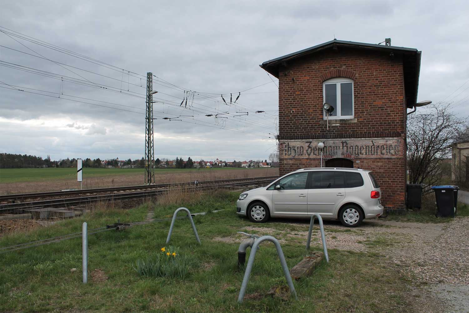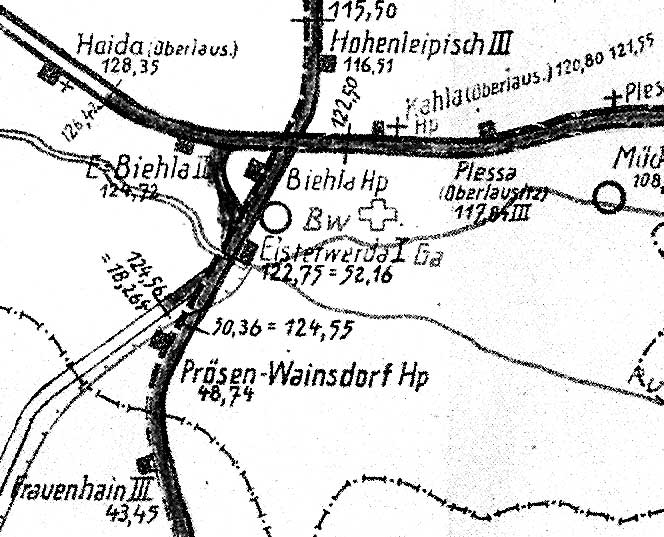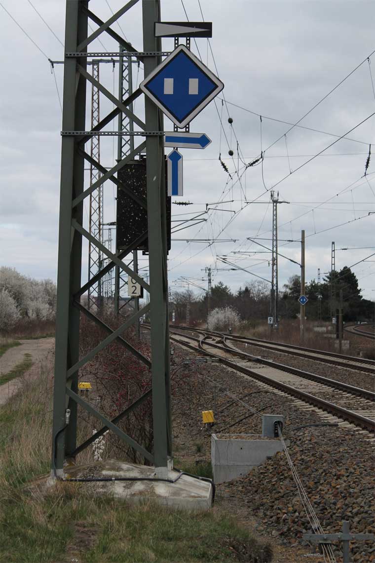 Rechts die Strecke Leipzig - Dresden mit km 69,6
