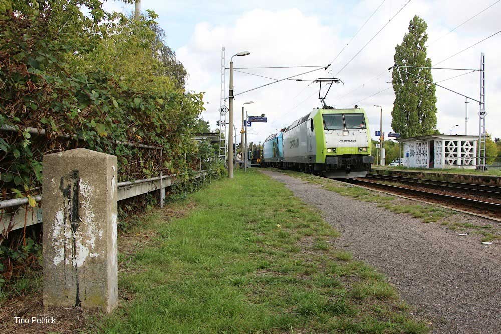 km 1,0 in Zeithain - Captrain 185-CL-003 + BR 145