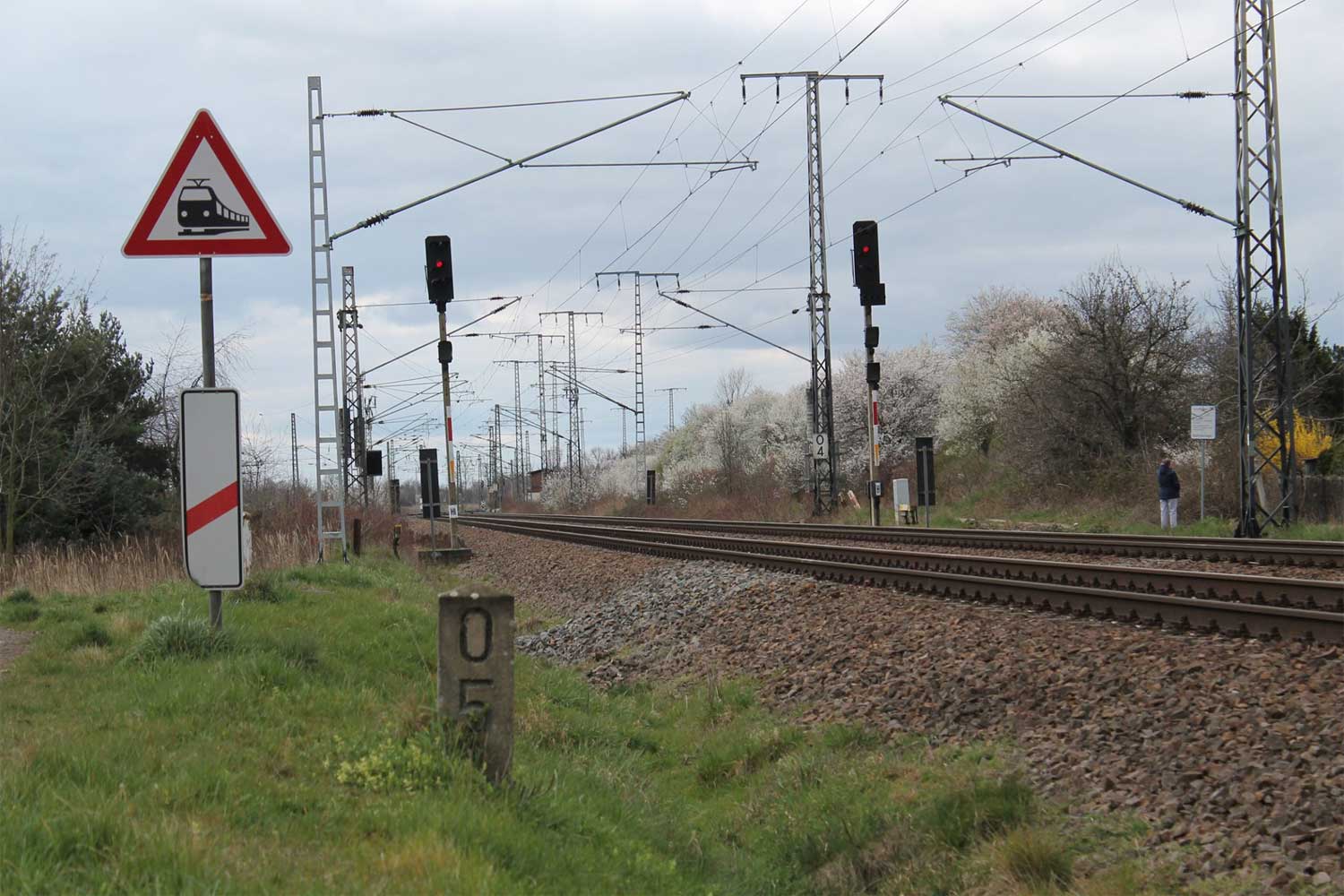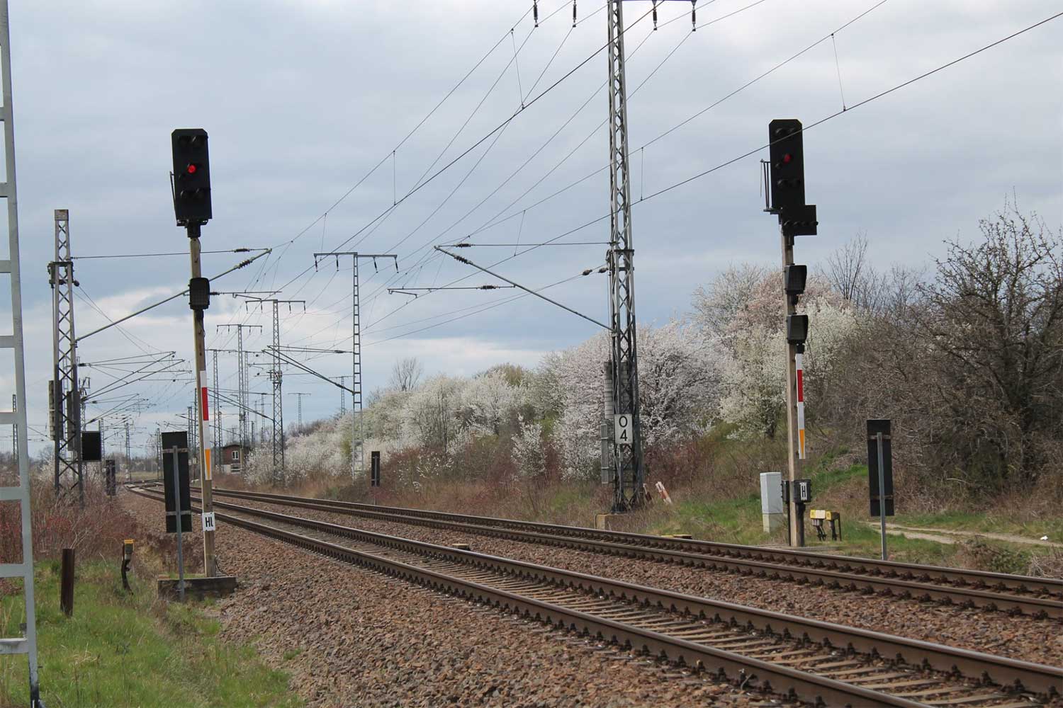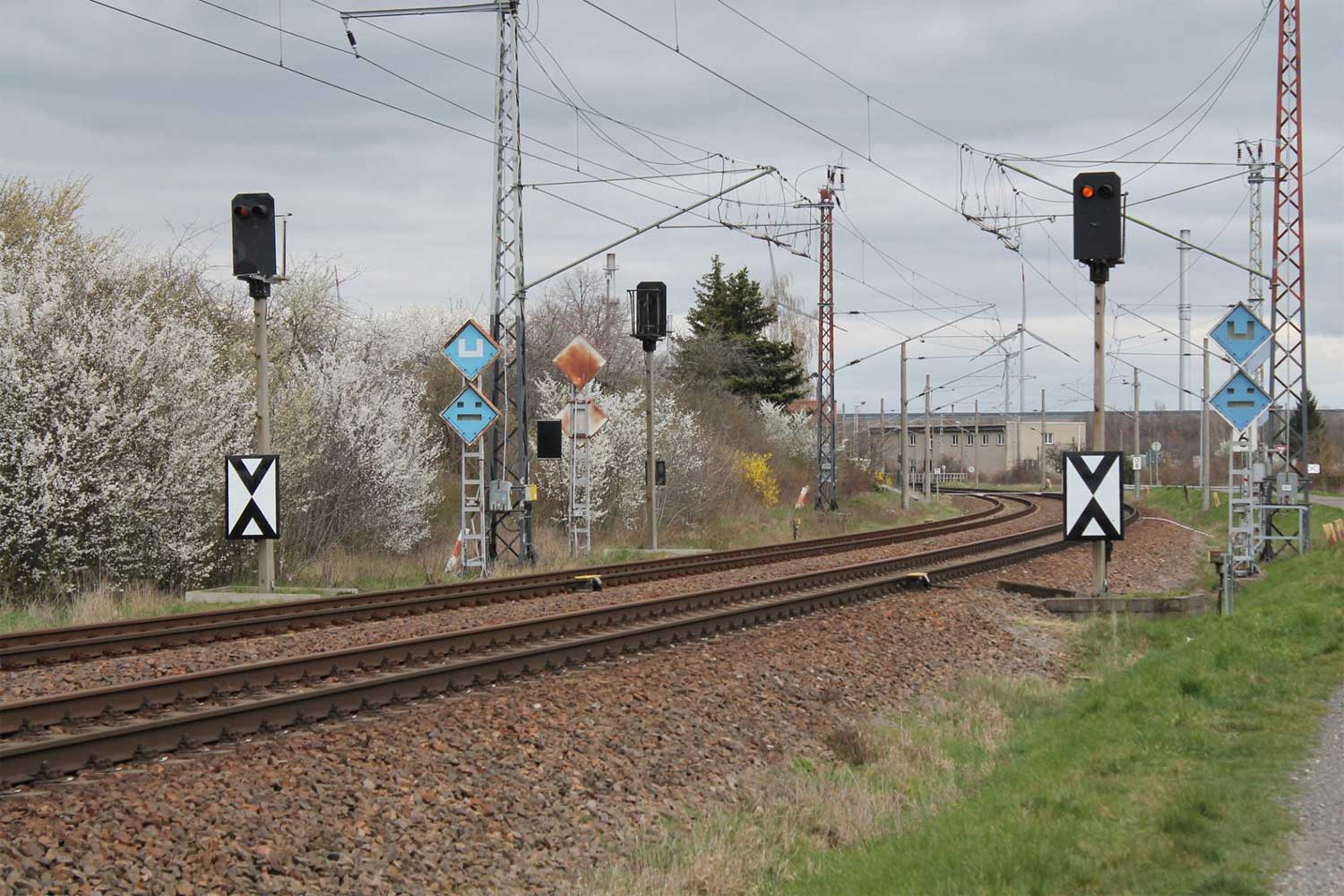 km 3,0 in Zeithain Rohrwerk - Blick Richtung Abzw Zeithain Elsterwerda