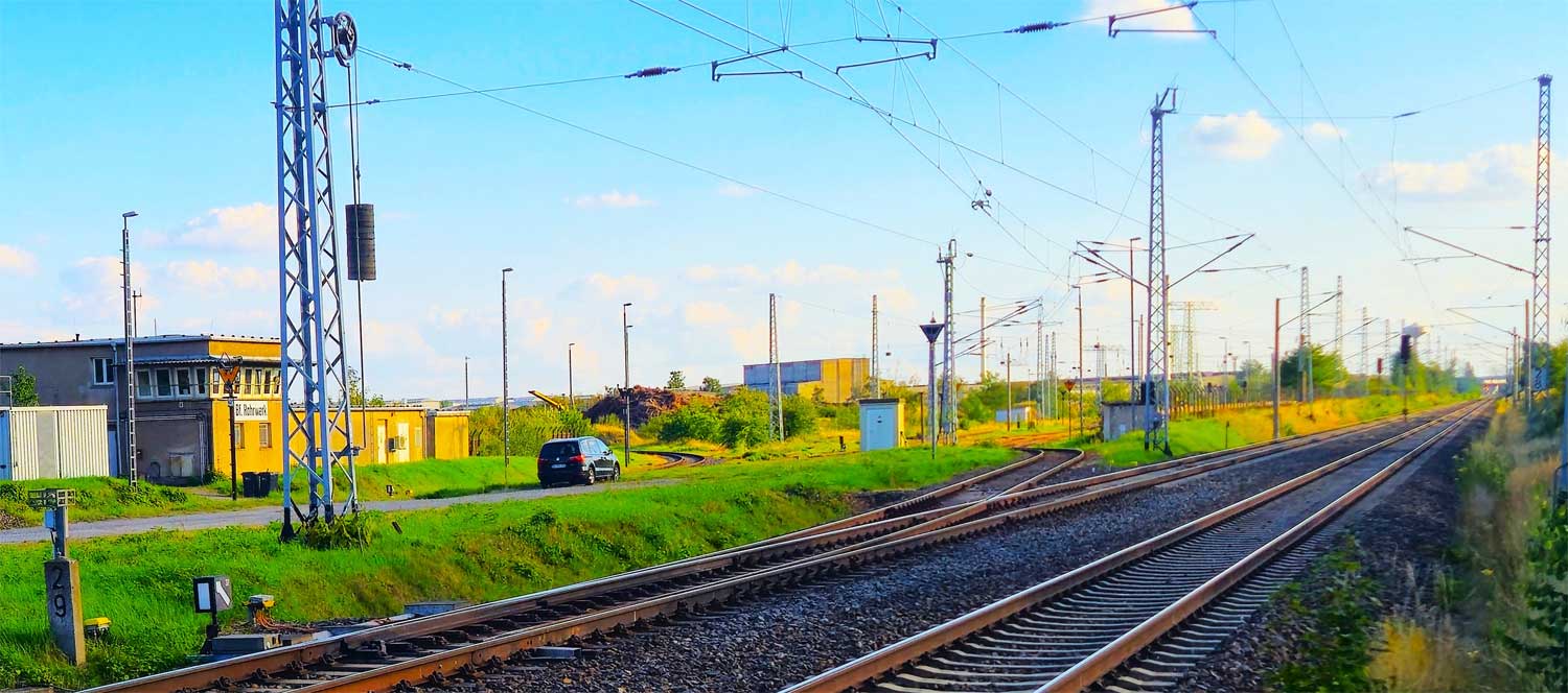 Rechts die Strecke Leipzig - Dresden bei km 69,6