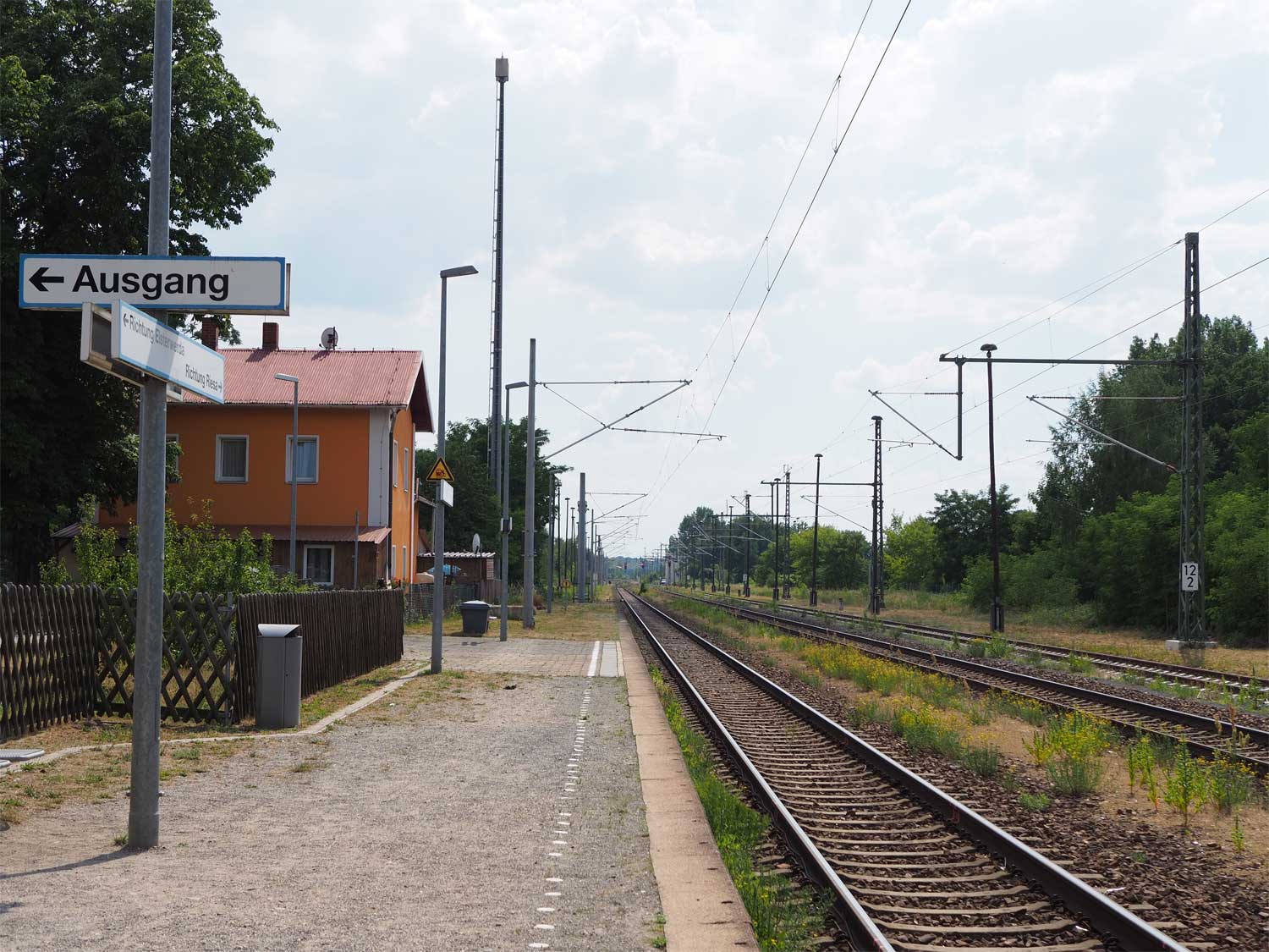 km 12,2 in Gröditz (b Riesa) - Blick Richtung Abzw Zeithain