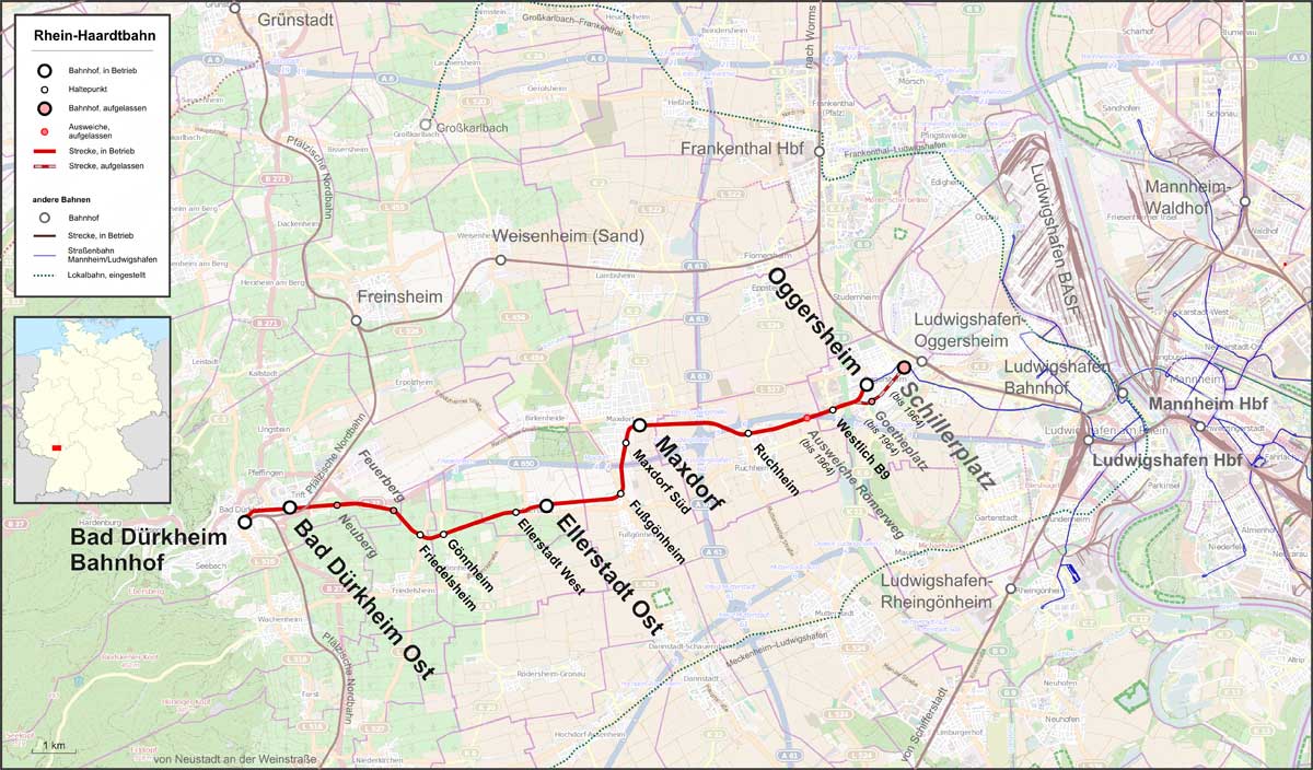 Bad Dürkheim Bf 0,0 - Oggersheim Schillerplatz 17,2 (Spurweite 1000 mm, elektrifiziert mit 750 V Gleichstrom)