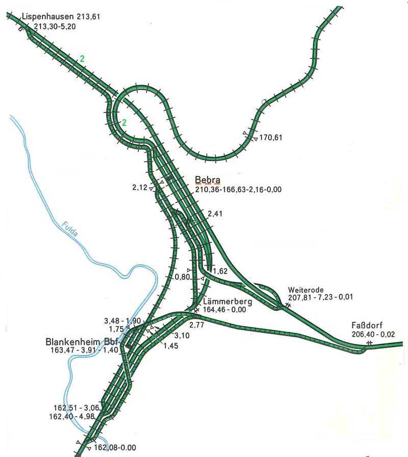 Abzw Lämmerberg 0,0 - Bebra 2,16 - Bebra Umladebf 4,35 - Lispenhausen 5,20