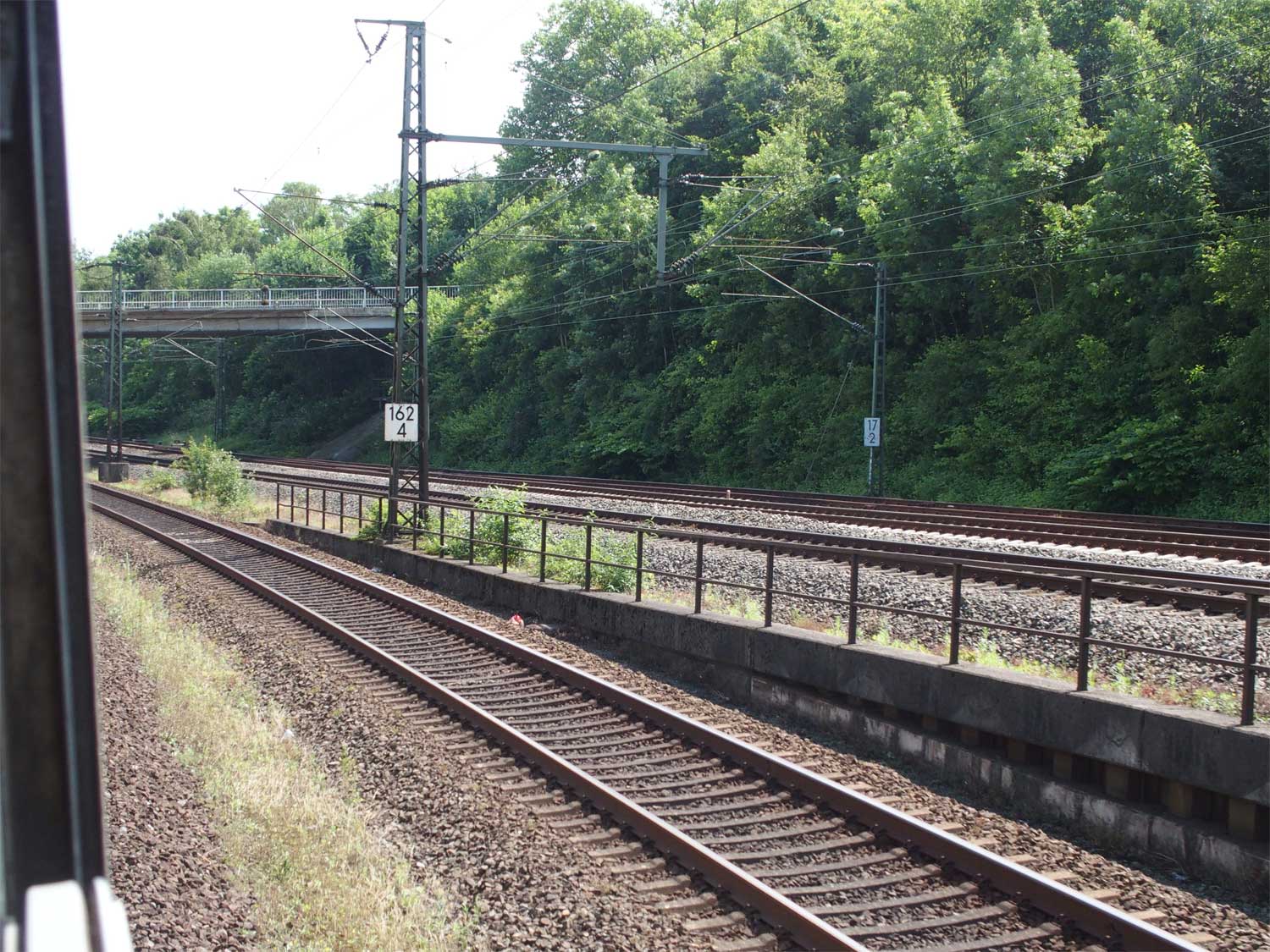 km 162,4 gehört zur Strecke (Aachen Hbf) - Mönchengladbach Hbf - Krefeld Hbf - Homburg/Ndrh - Trajekt - Duisburg-Ruhrort - Essen Hbf - Dortmund Hbf - Unna - Soest