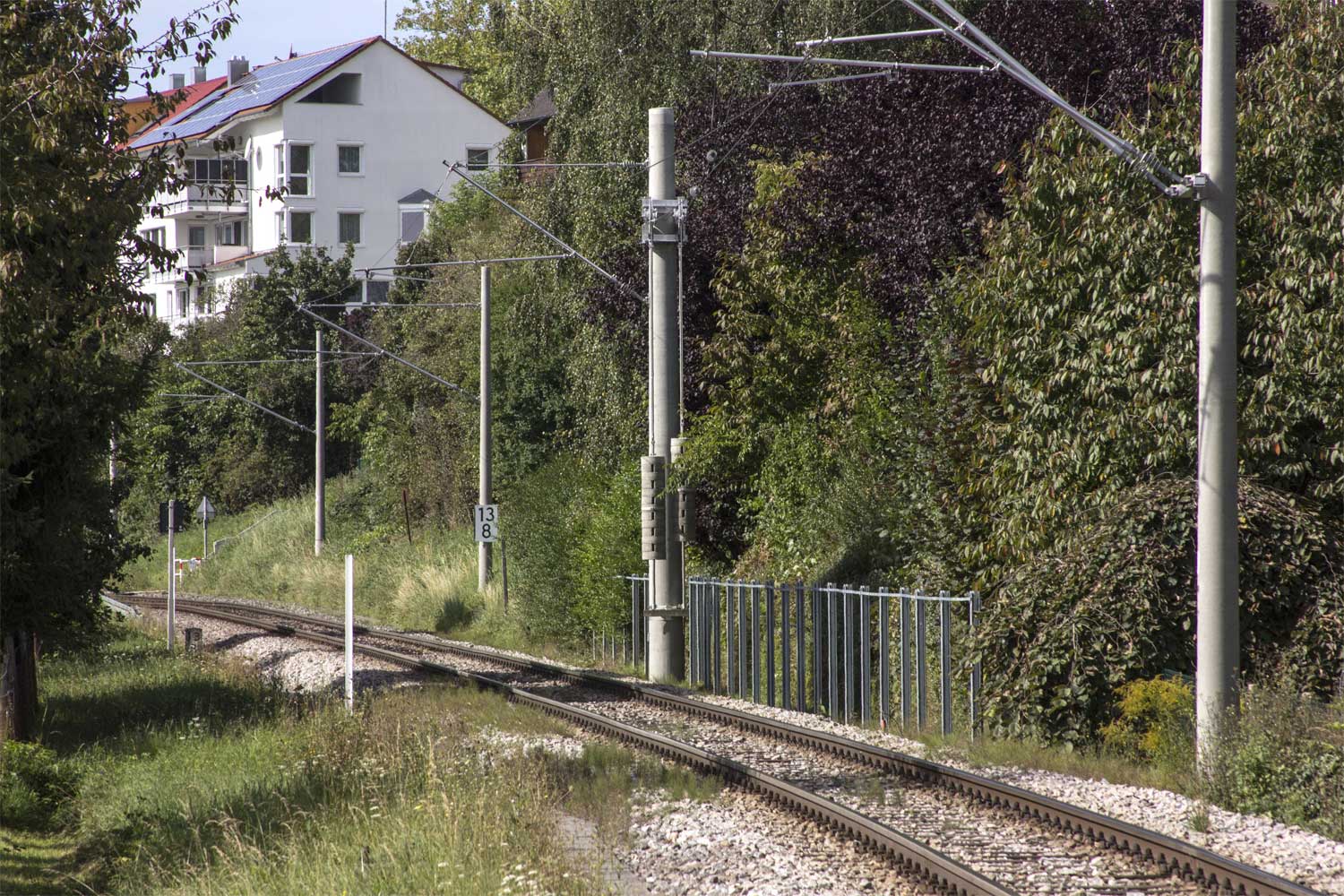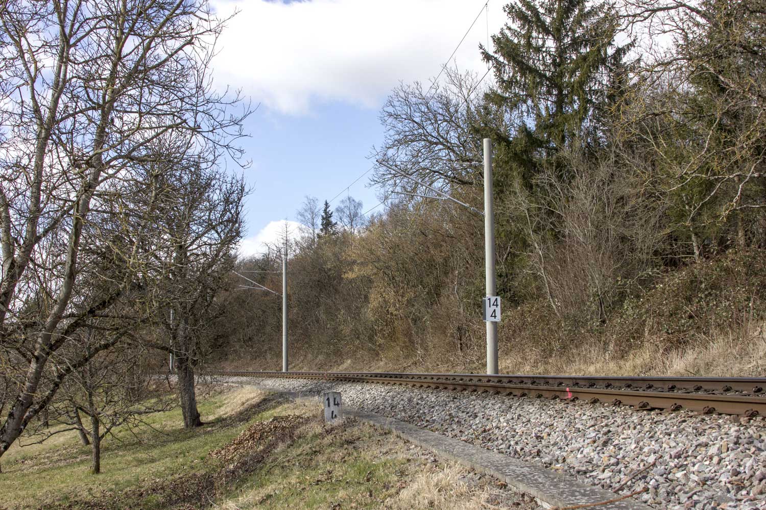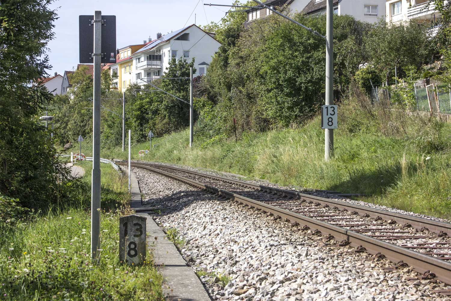 km 9,0 (links am Oberleitungsmast vesteckt) in Holzgerlingen Bf