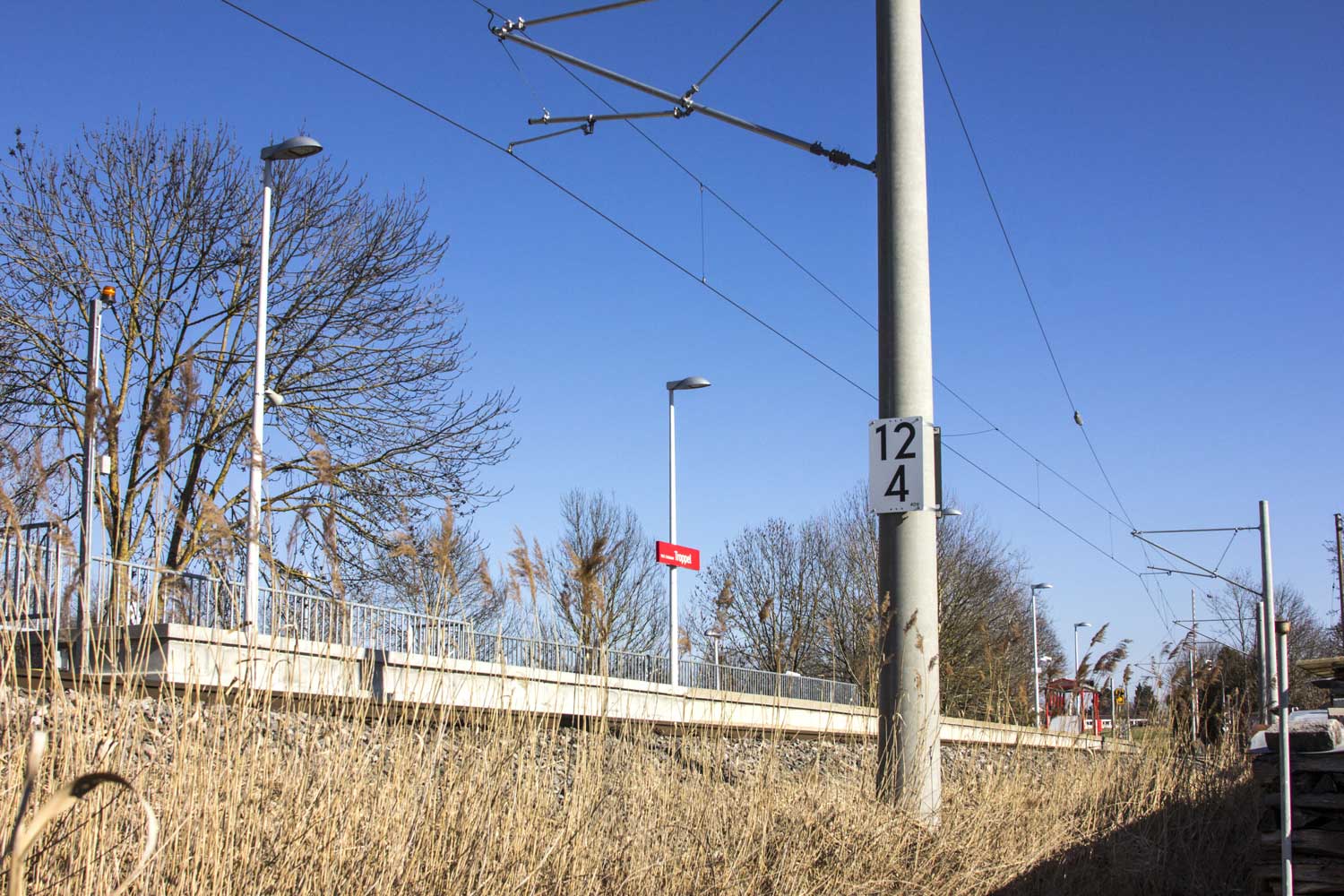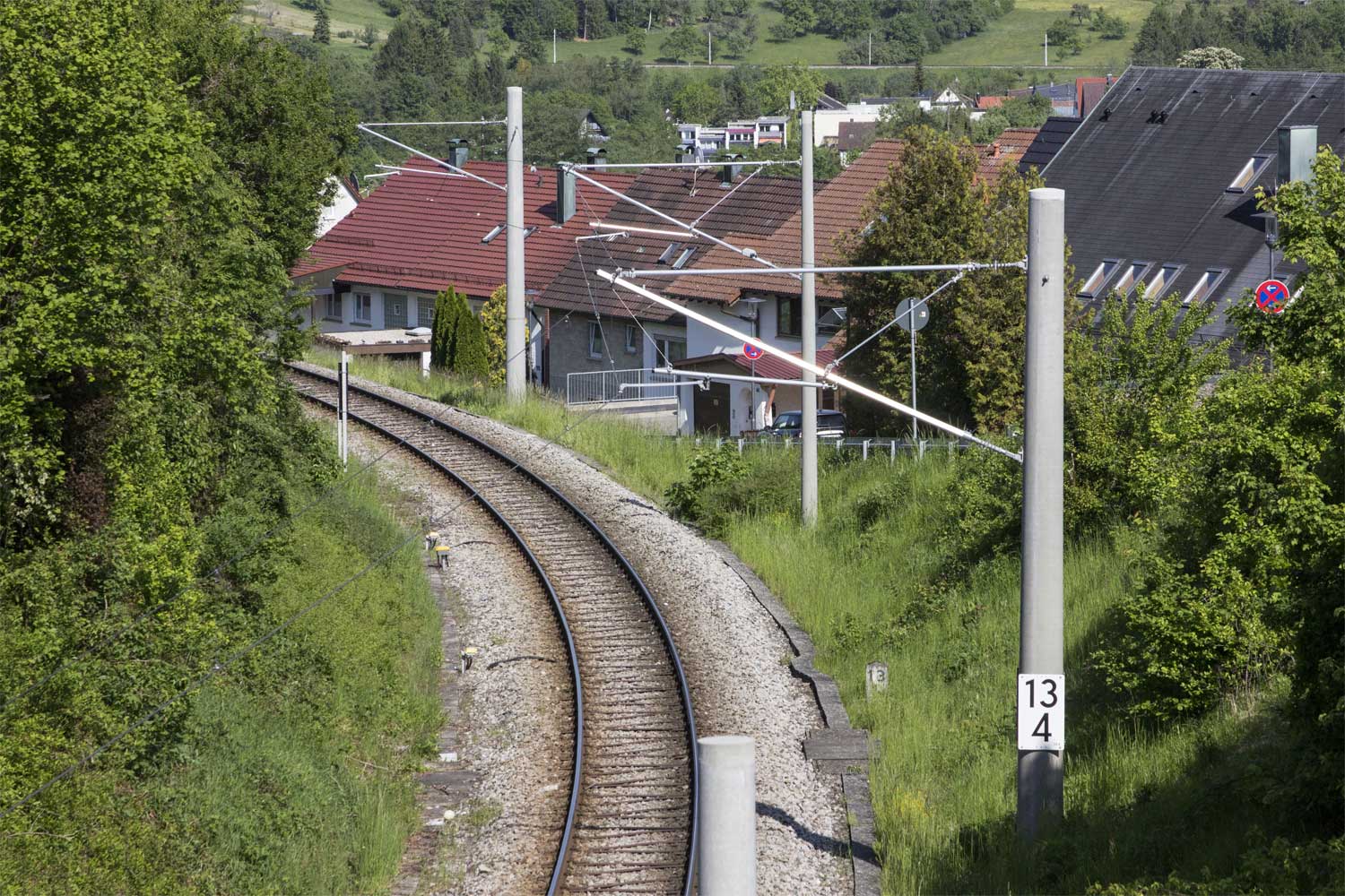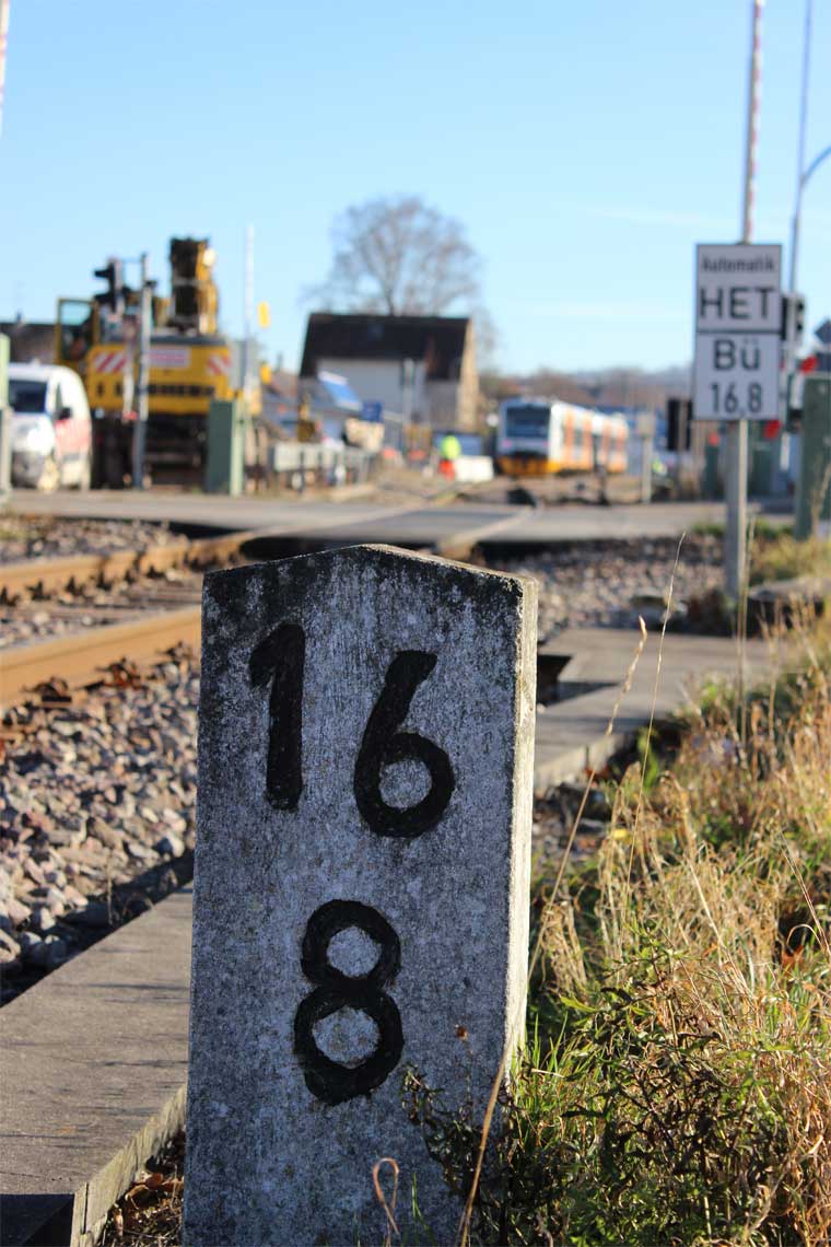 km 9,0 (links am Oberleitungsmast vesteckt) in Holzgerlingen Bf