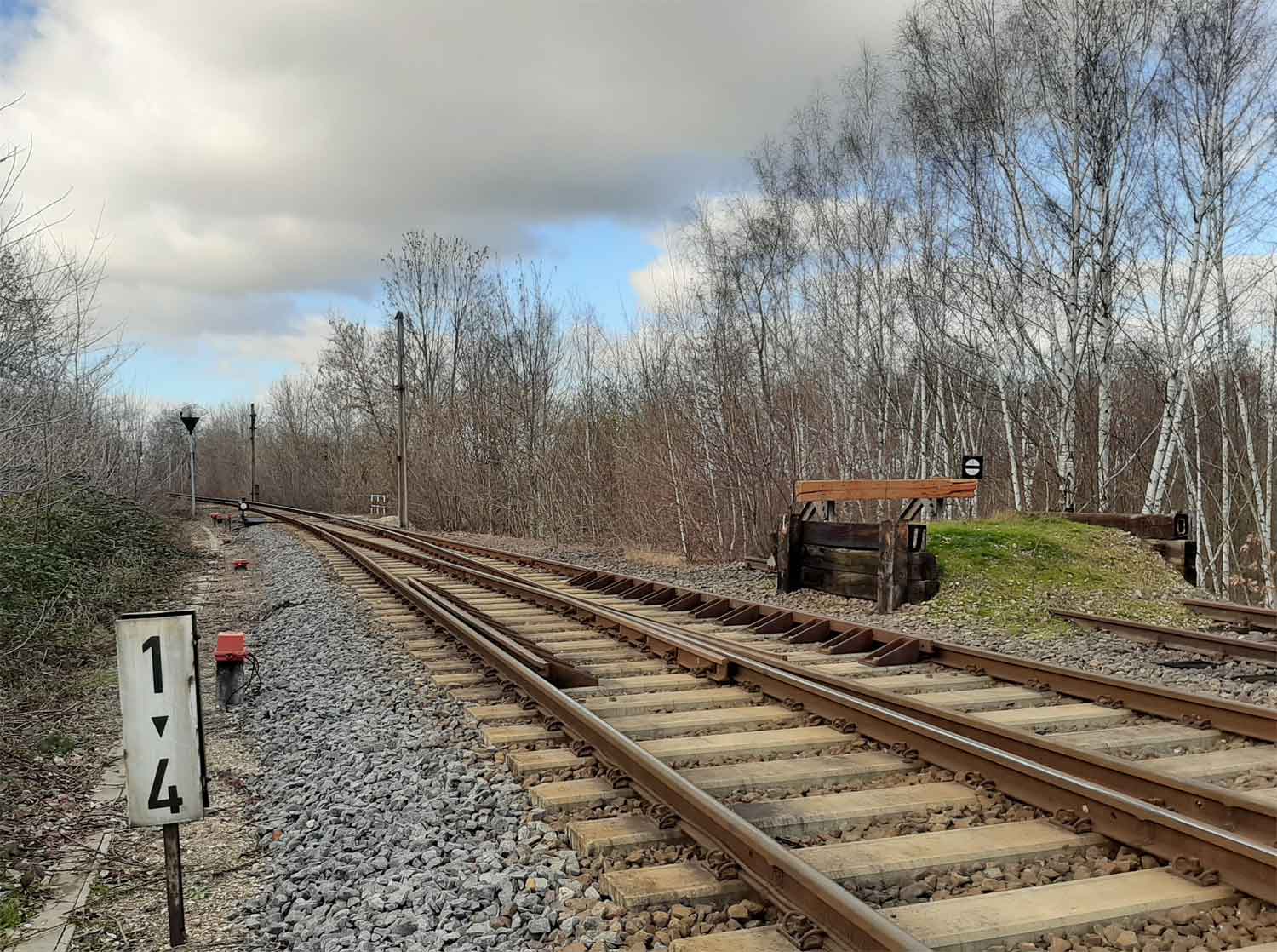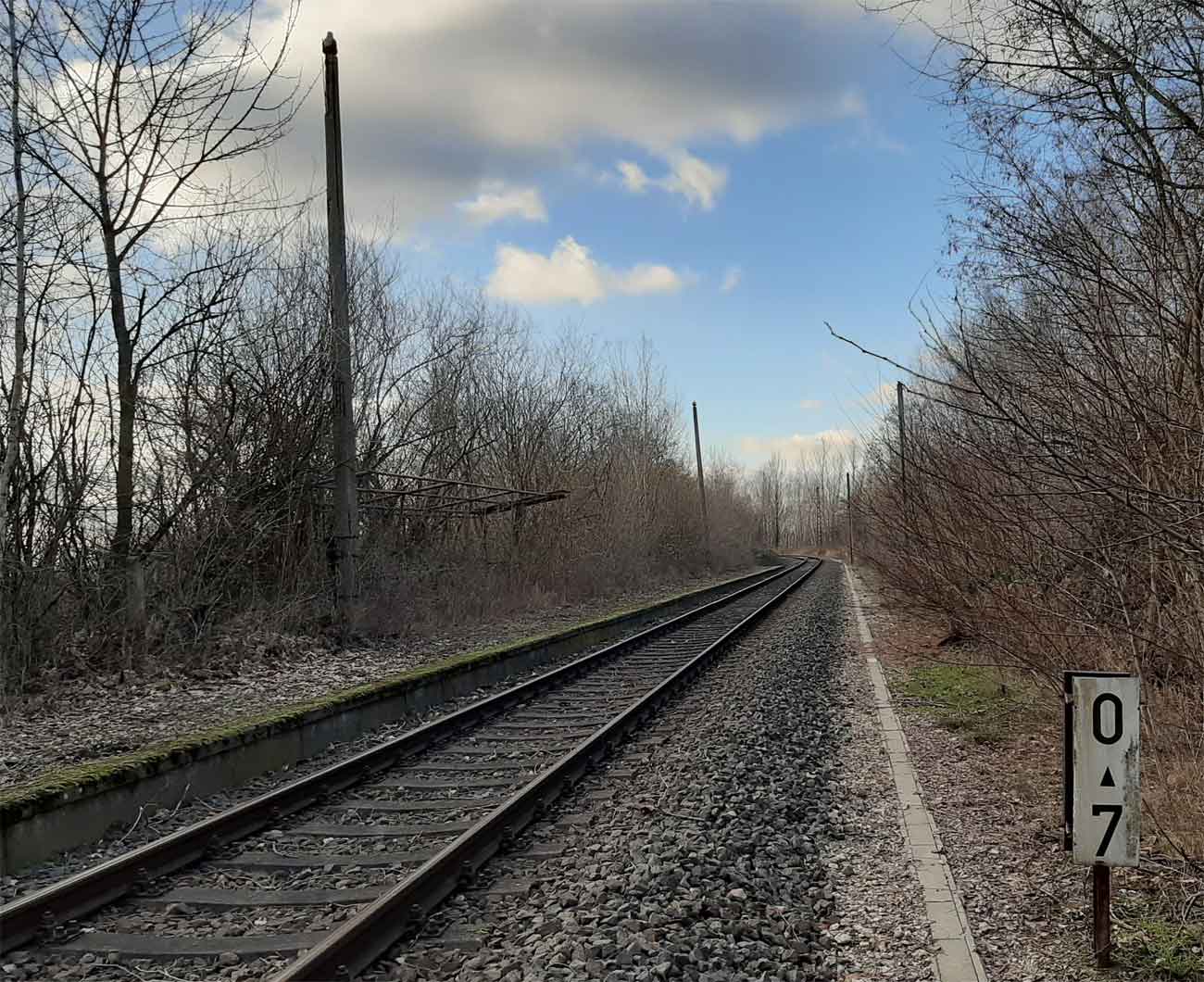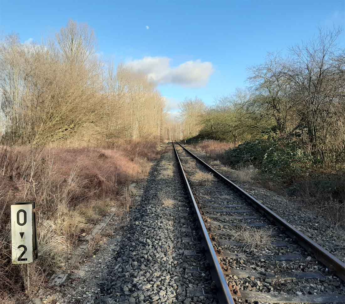 km 0,0 der Anschlussbahn - Blick Richtung