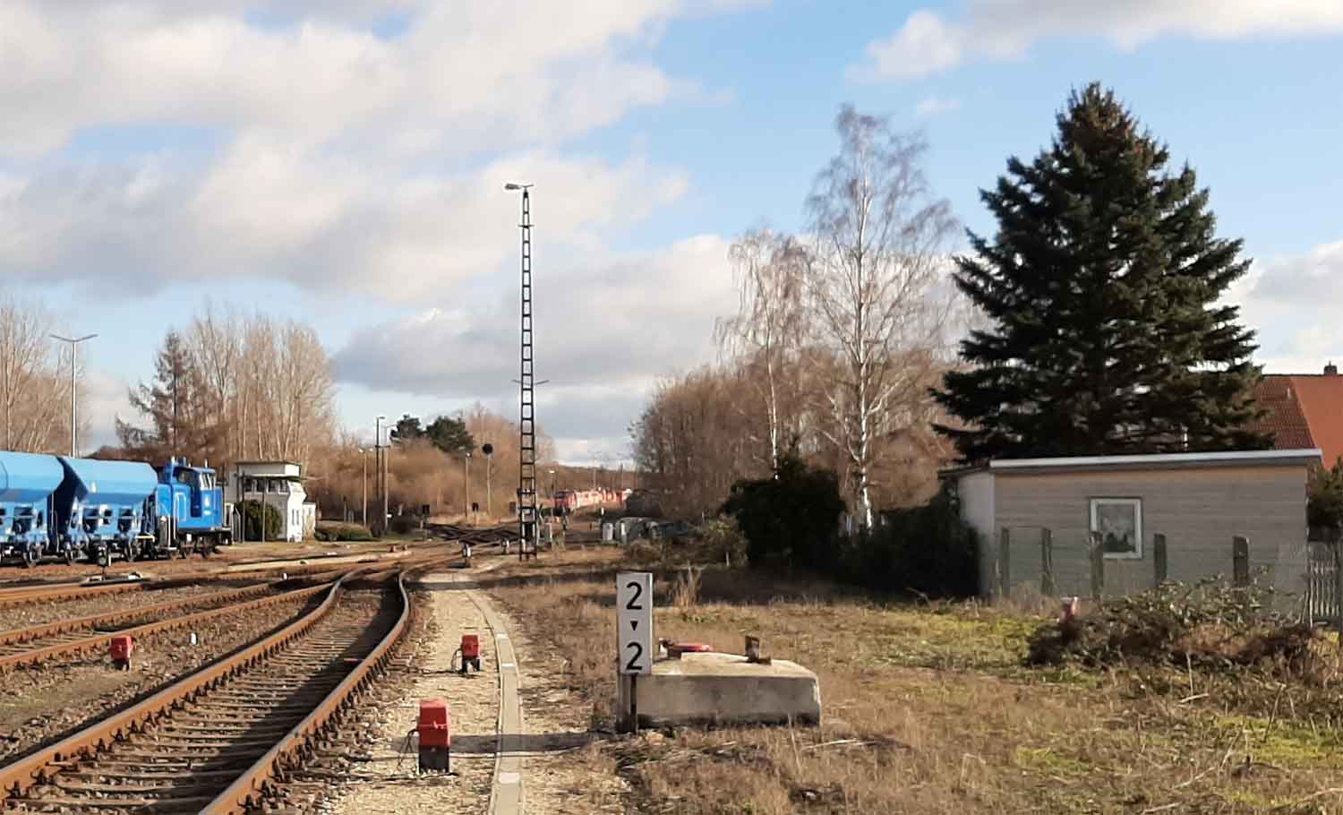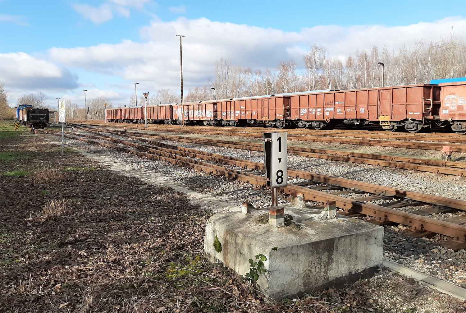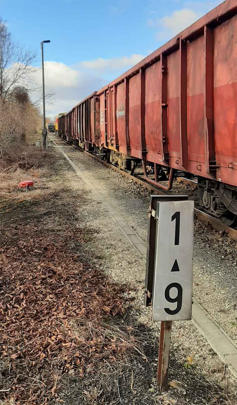 km 0,0 der Anschlussbahn - Blick Richtung