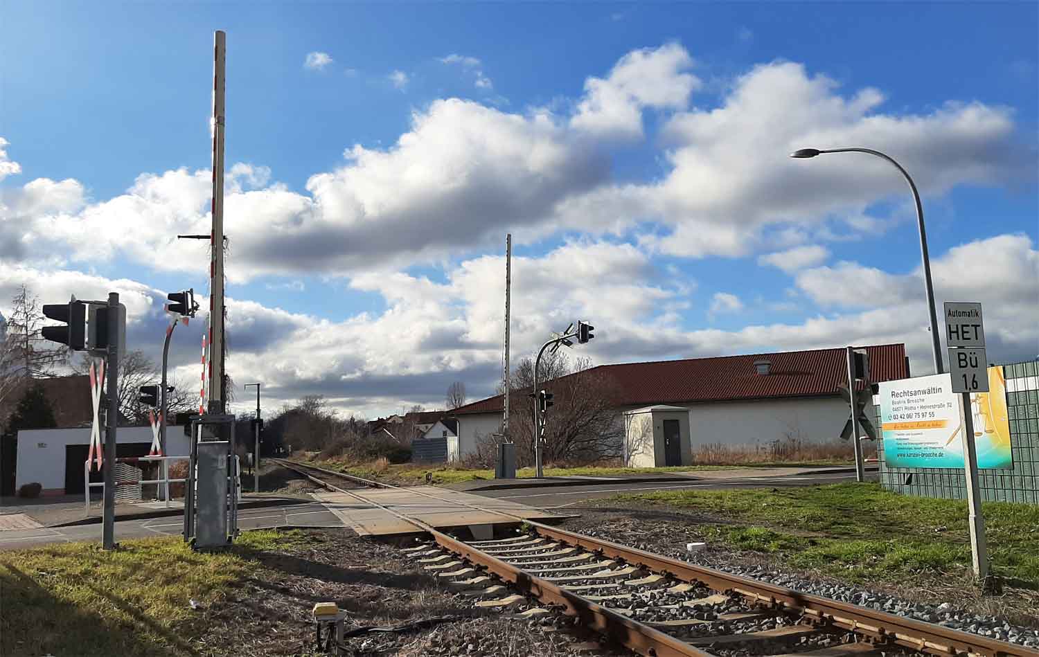 BÜ km 1,6 zwischen Böhlen (b Leipzig) und Rötha - Blick Richtung Böhlen (b