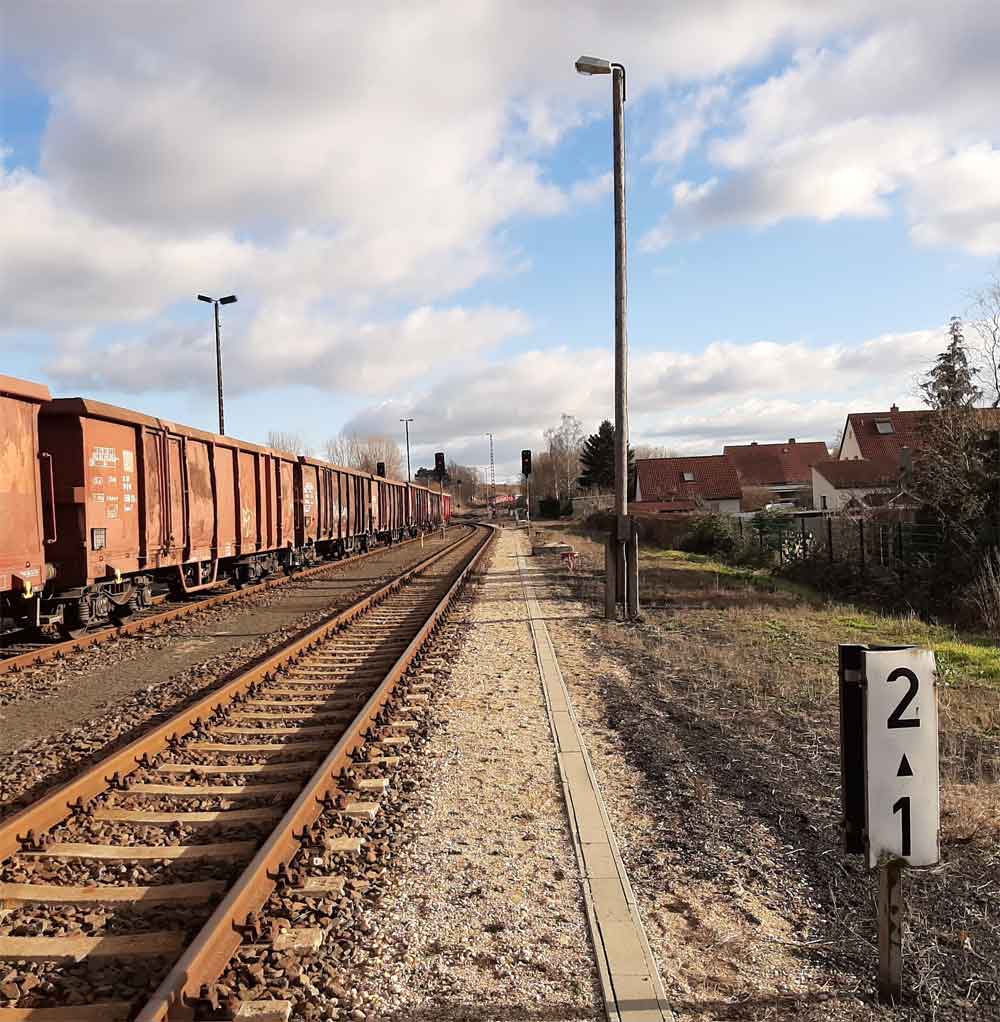 km 2,1 in Espenhain Werkbahnhof - Blick Richtung Böhlen (b Leipzig)